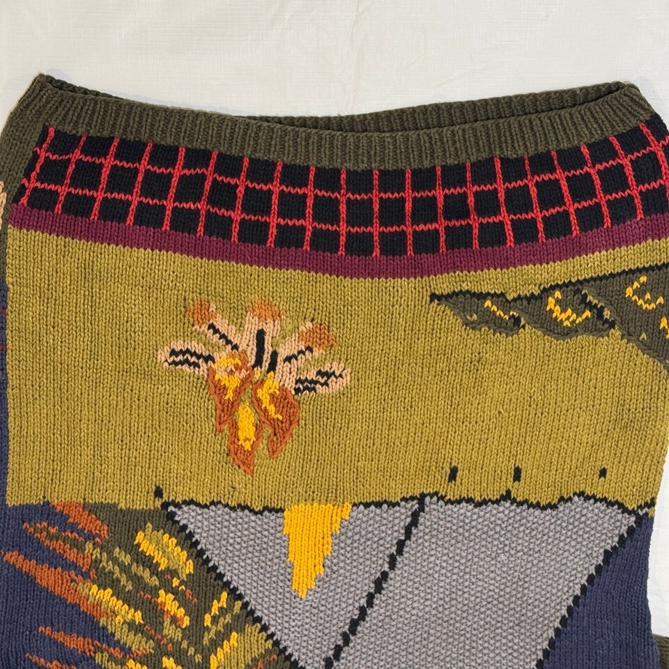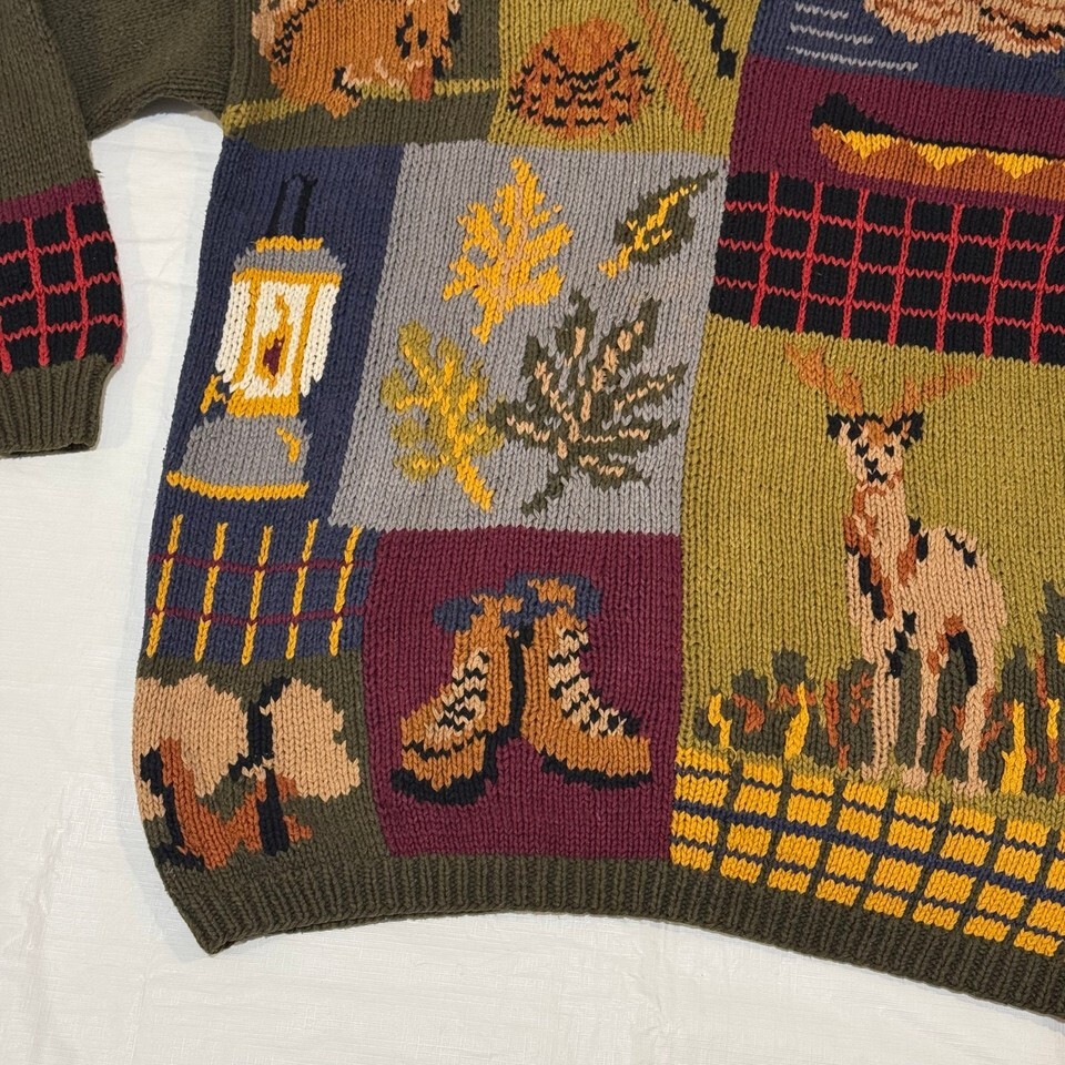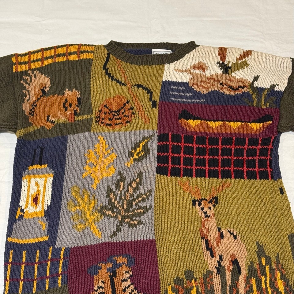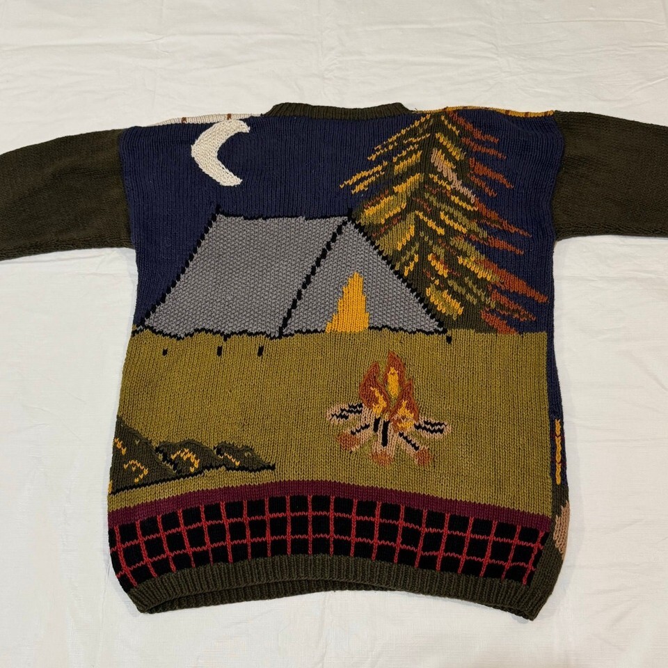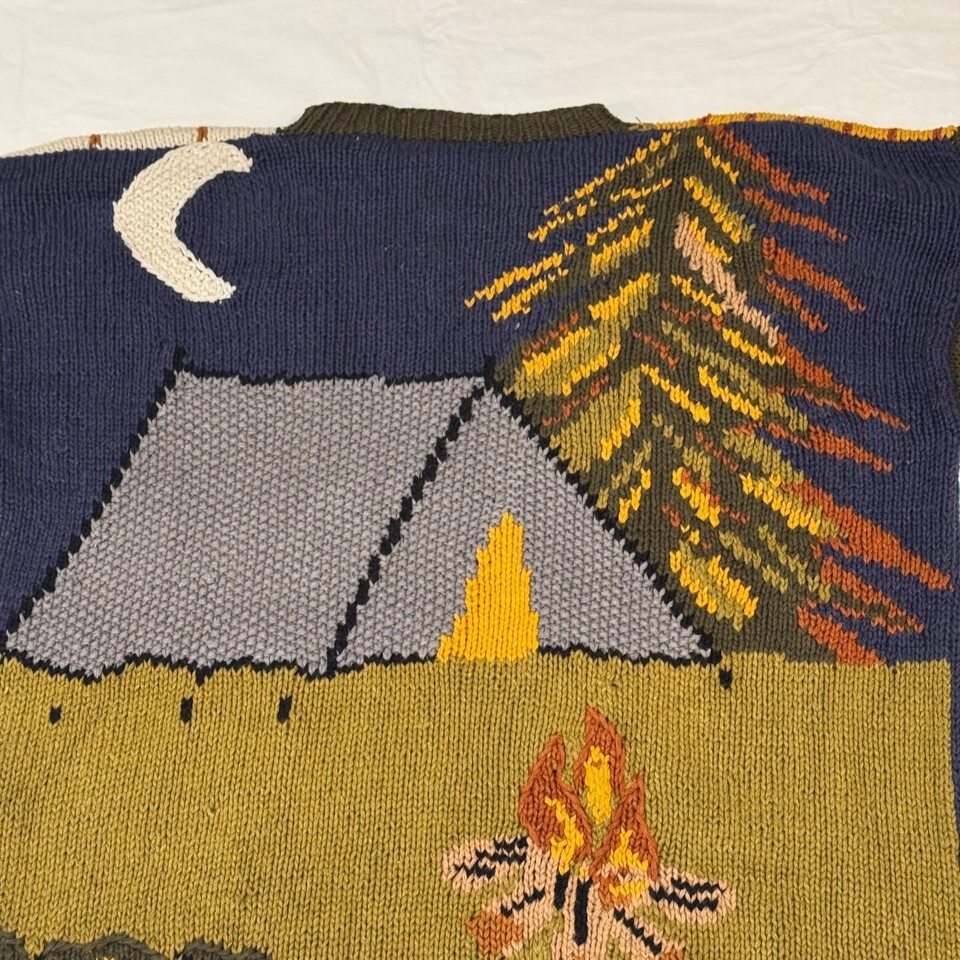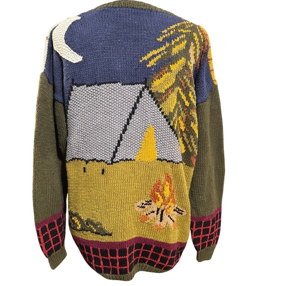 Vintage 90s Streetwear Fall Sweater Campfire Deer Leaves Tent Duck Womens Size L