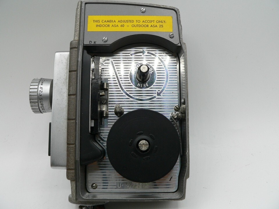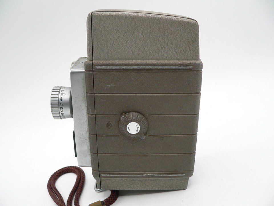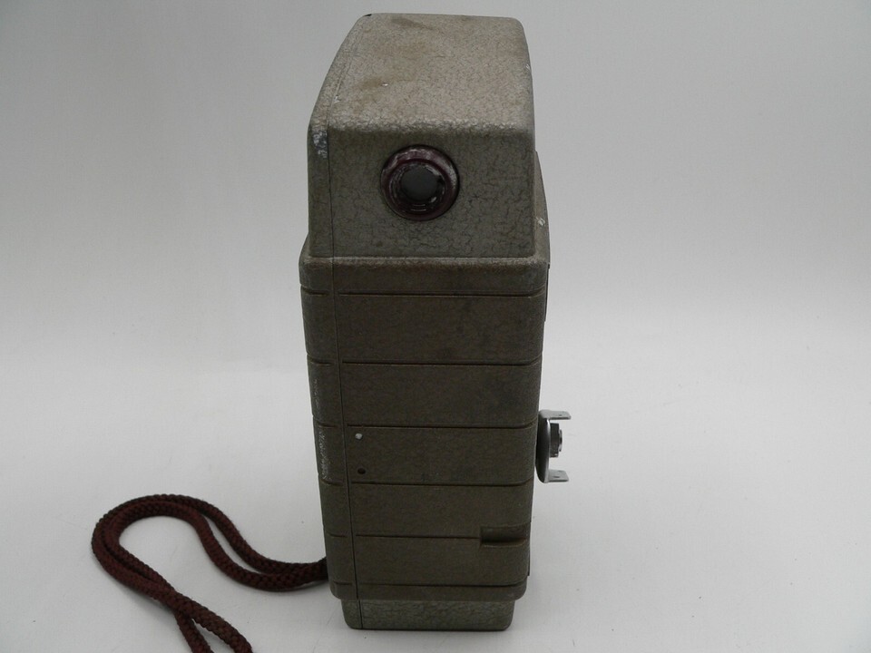 The camera is designed for standard 8mm film format, ensuring compatibility with a wide range of films and reels. Although the wind-up crank is missing, this piece remains a remarkable find for those who appreciate the manual precision of film cameras. It's an ideal choice for anyone looking to expand their vintage camera collection or delve into the art of celluloid cinematography.