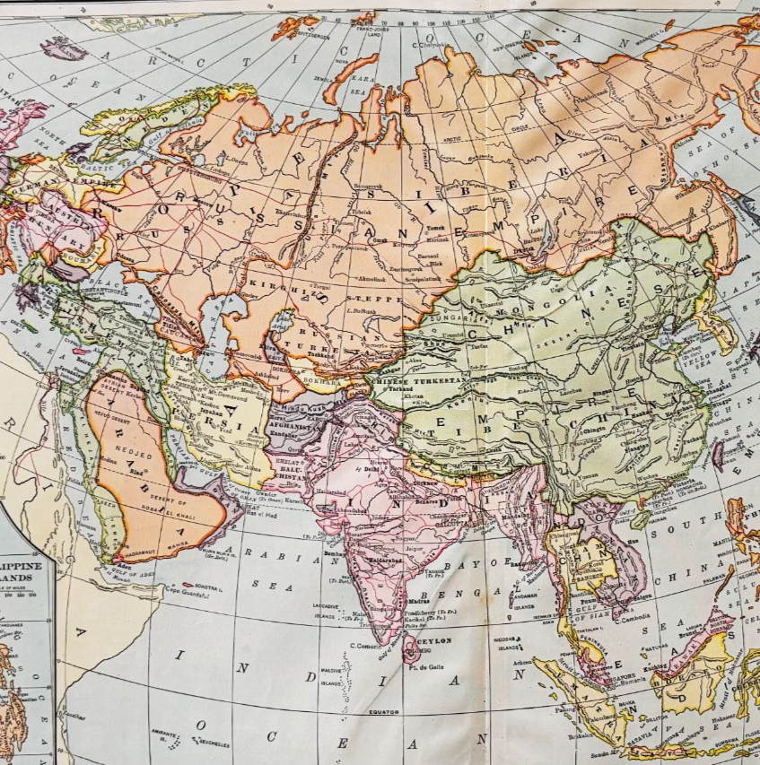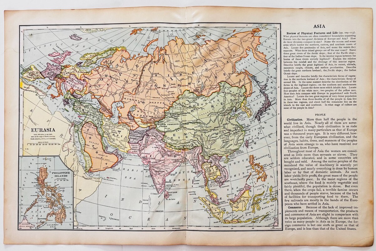 1898 Map Eurasia Europe Asia Victorian Southeast Asia Philippines Print DWXX1