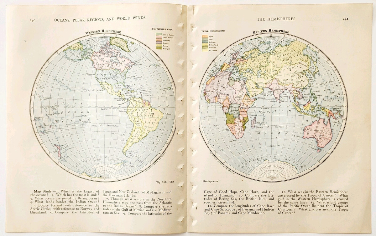 1916 World Map Eastern Western Hemispheres and 49 similar items