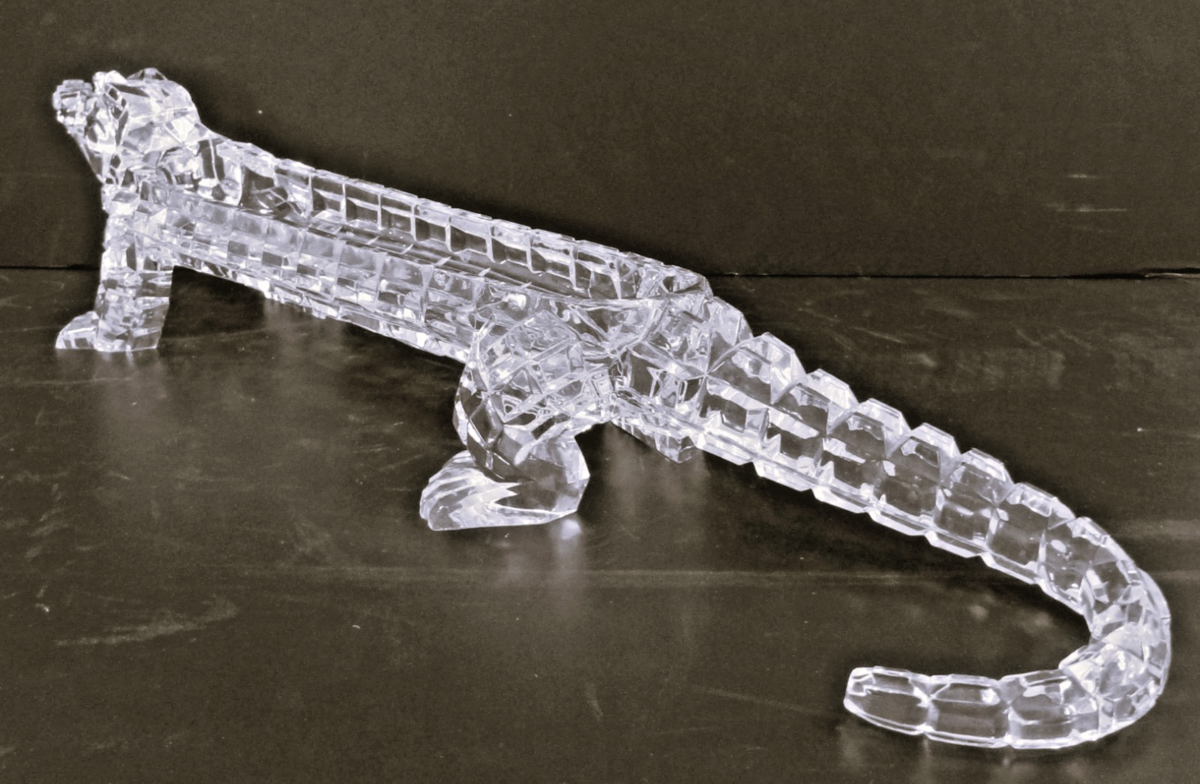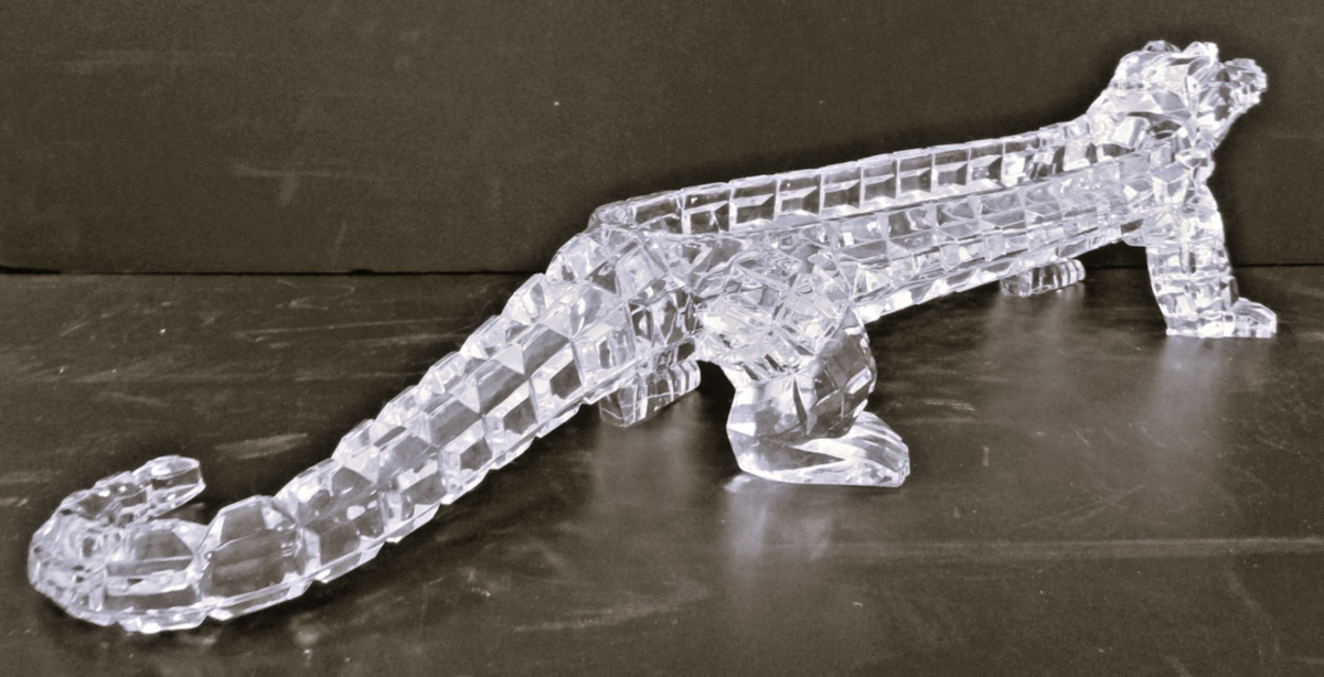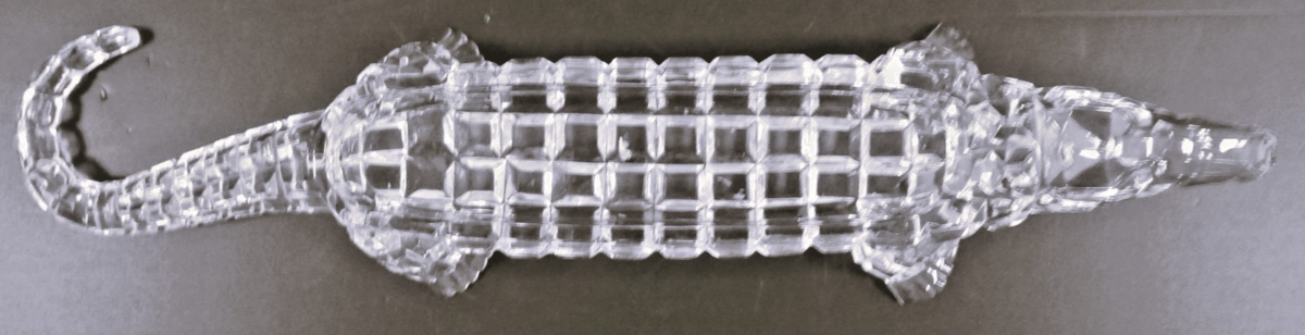 The Icy Craft Clear Acrylic Crocodile Dish is a unique and stylish decorative collectible measuring 20" long. Made from high-quality acrylic material, this original piece exudes a modern and sleek aesthetic with its clear color. Perfect for post-1940 collectors or those looking to add a touch of sophistication to their decor, this crocodile dish from Icy Craft is a standout addition to any collection.