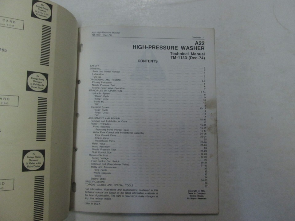 John Deere A22 High Pressure Washer Technical Shop Manual FACTORY OEM DEALERSHIP