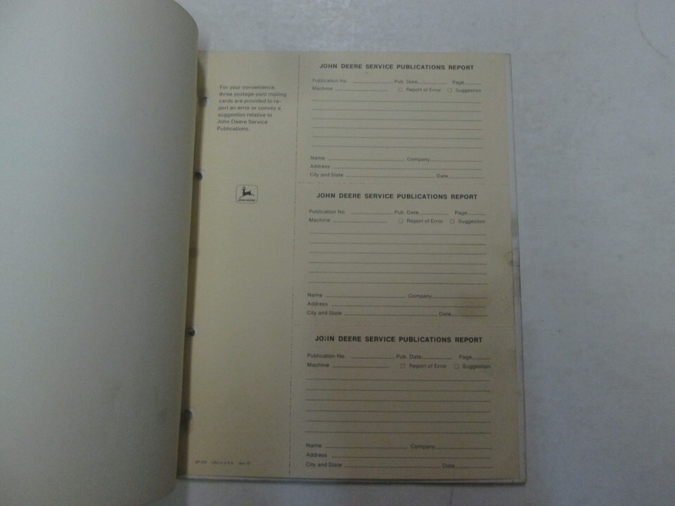 Loads of information and illustrations, COVERS A LOT, exploded illustrations and/or diagrams, great manual to have when you own A JOHN DEERE.