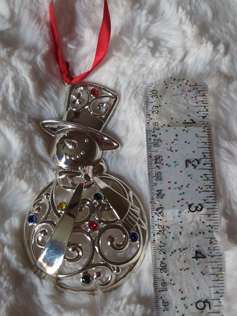 Lenox Sparkle and Scroll Clear Crystals Snowman Ornament SilverPlated