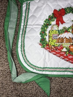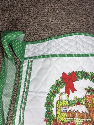 Vintage Franco Quilted Christmas Holiday Apron Wreath Cloth Fabric