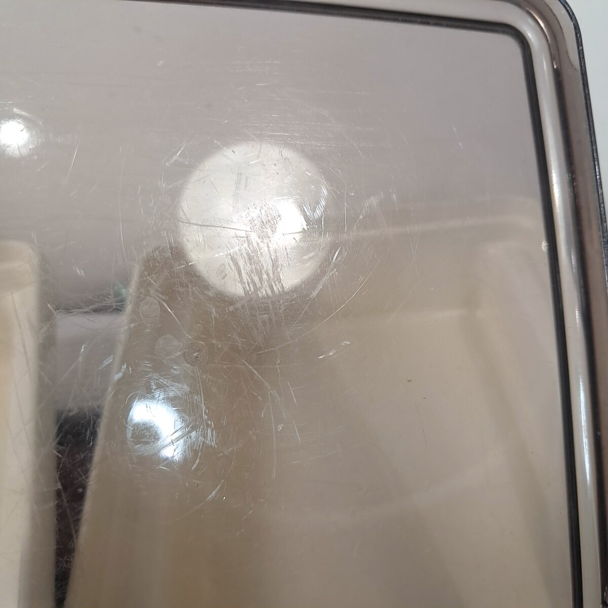 Ivory/cream with smoke brown lids. Set of 2. Both have wear/staining/scratches/marks as shown. See pics.
