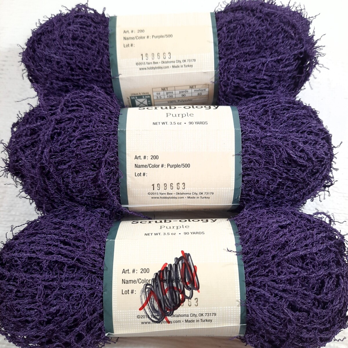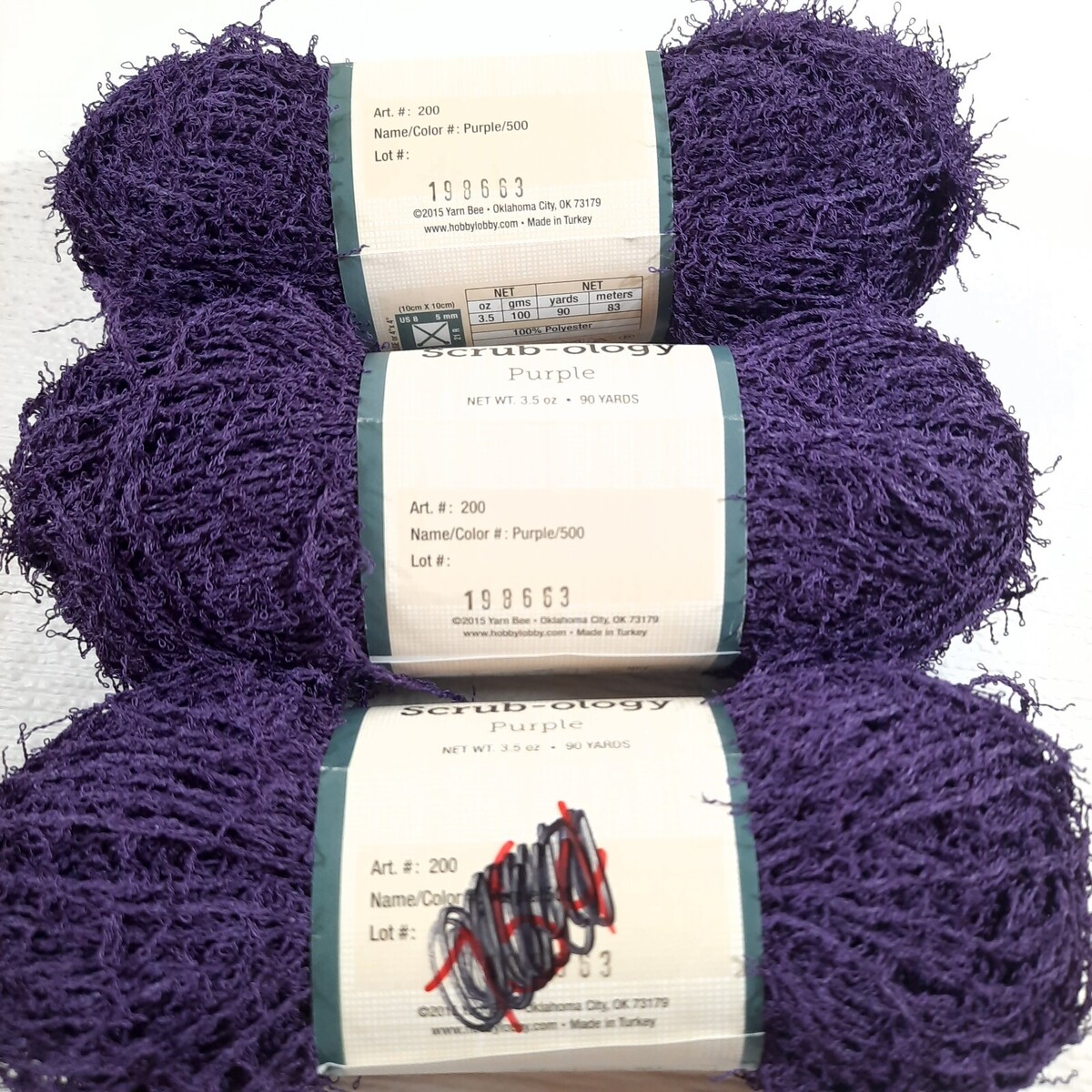 Yarn-bee Scrub-ology yarn Purple #500 set of 3 skeins textured polyester