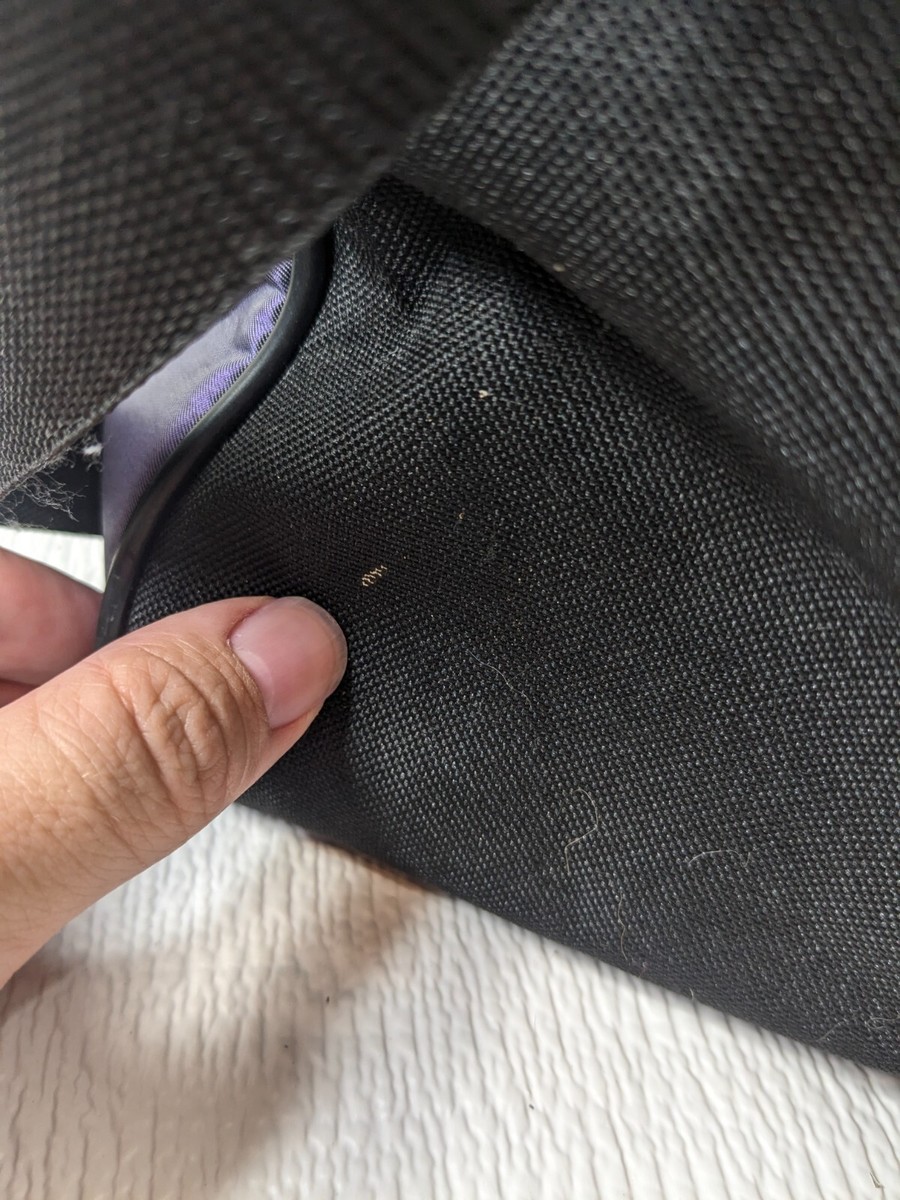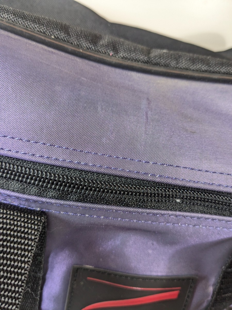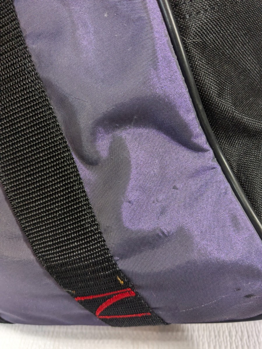 Some wear/light fraying/buckling/bubbling of the purple fabric as shown. From the late 90s to early 2000s.