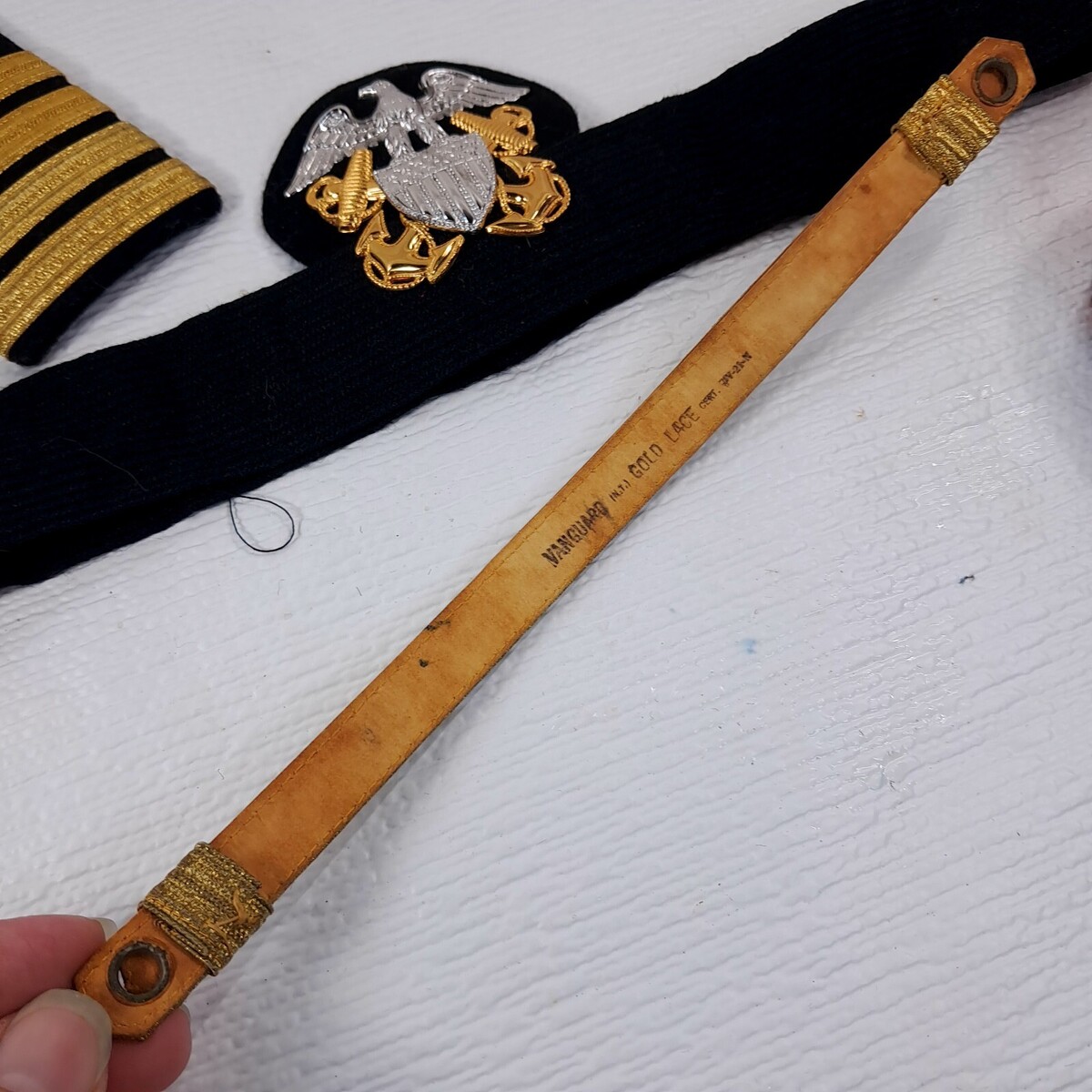 Navy Vanguard Captain 4 Stripe gold star hard board pin cap band badge lace pin