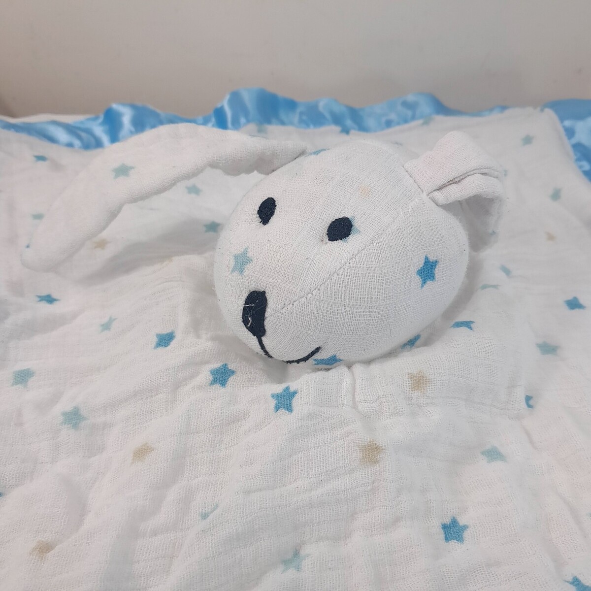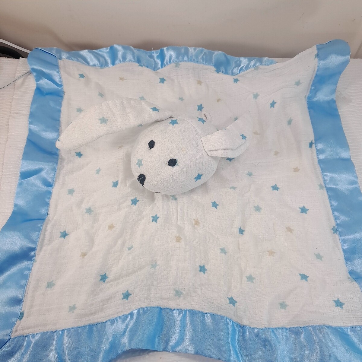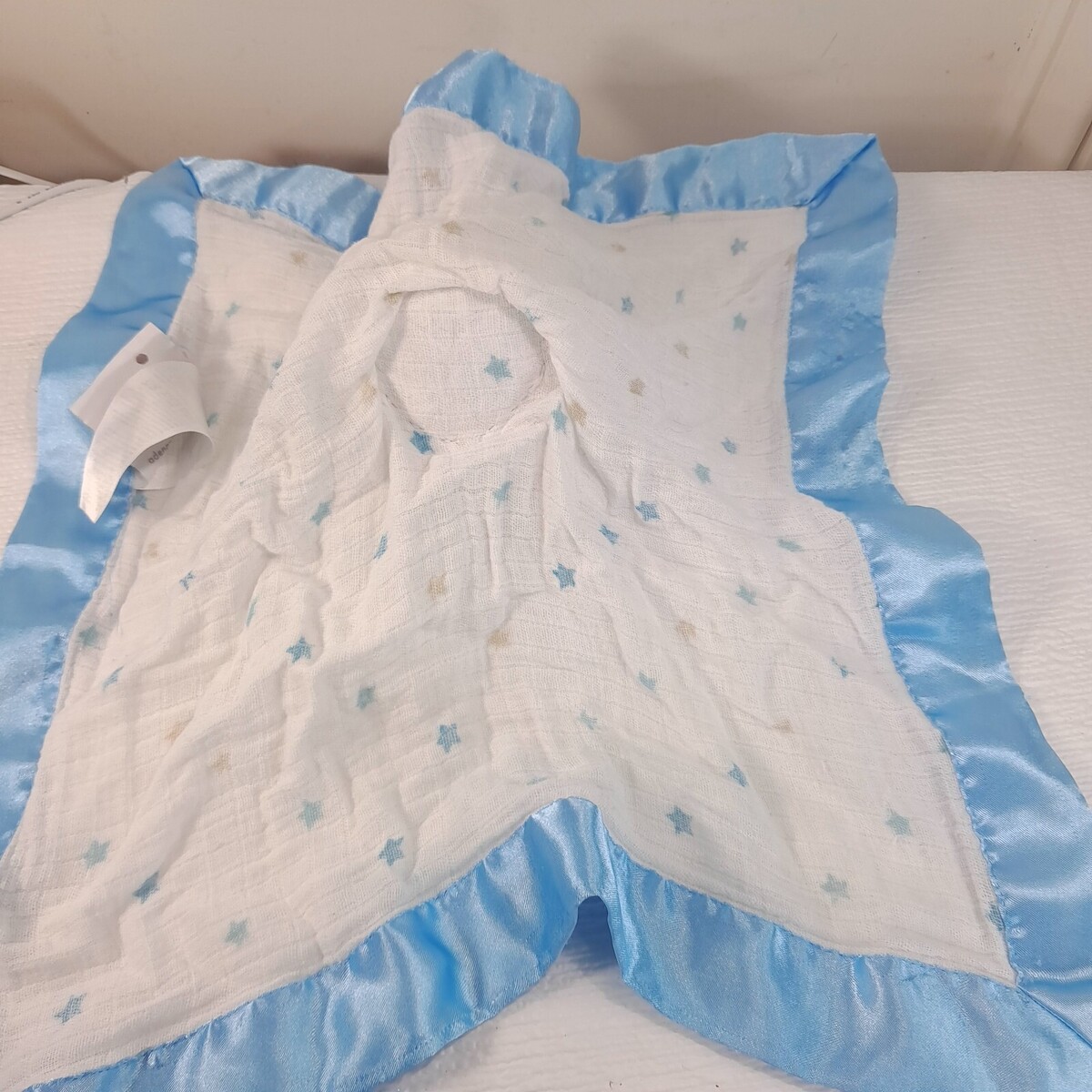 Aden + Anais Bunny rabbit Musy Mate Lovey Security Blanket blue tan stars satin