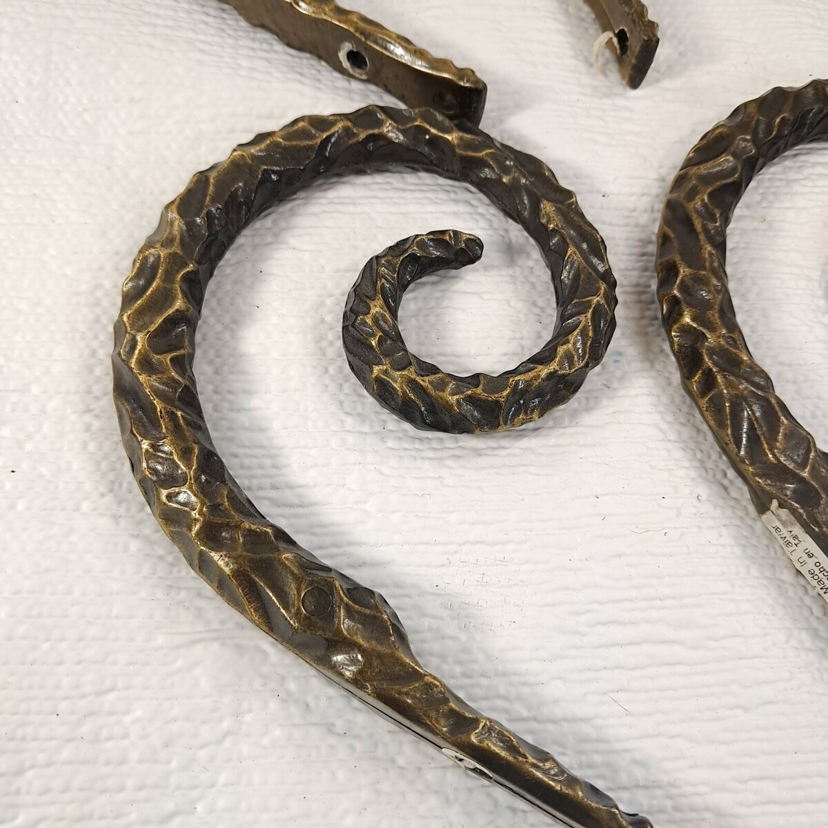 CROSCILL scarf tie back curtain Holder Swirl Bracket Brass Gold Hammered Scroll