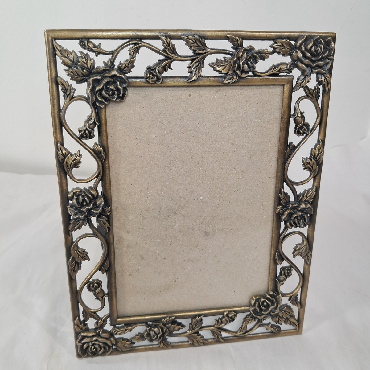 Vintage Connoisseur Picture Frame 3.5x5" BRASS ROSES Filigree Deco photo Metal