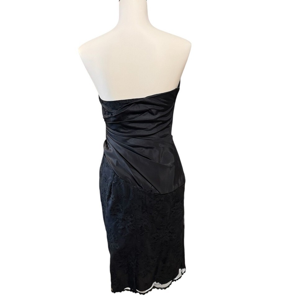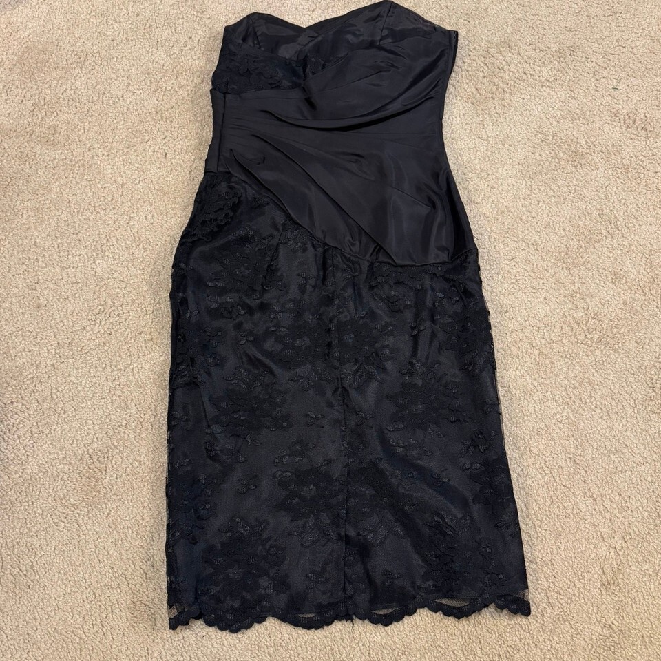 Vintage 80s Scott McClintock Strapless Lace Black Cocktail Dress Formal Size XS