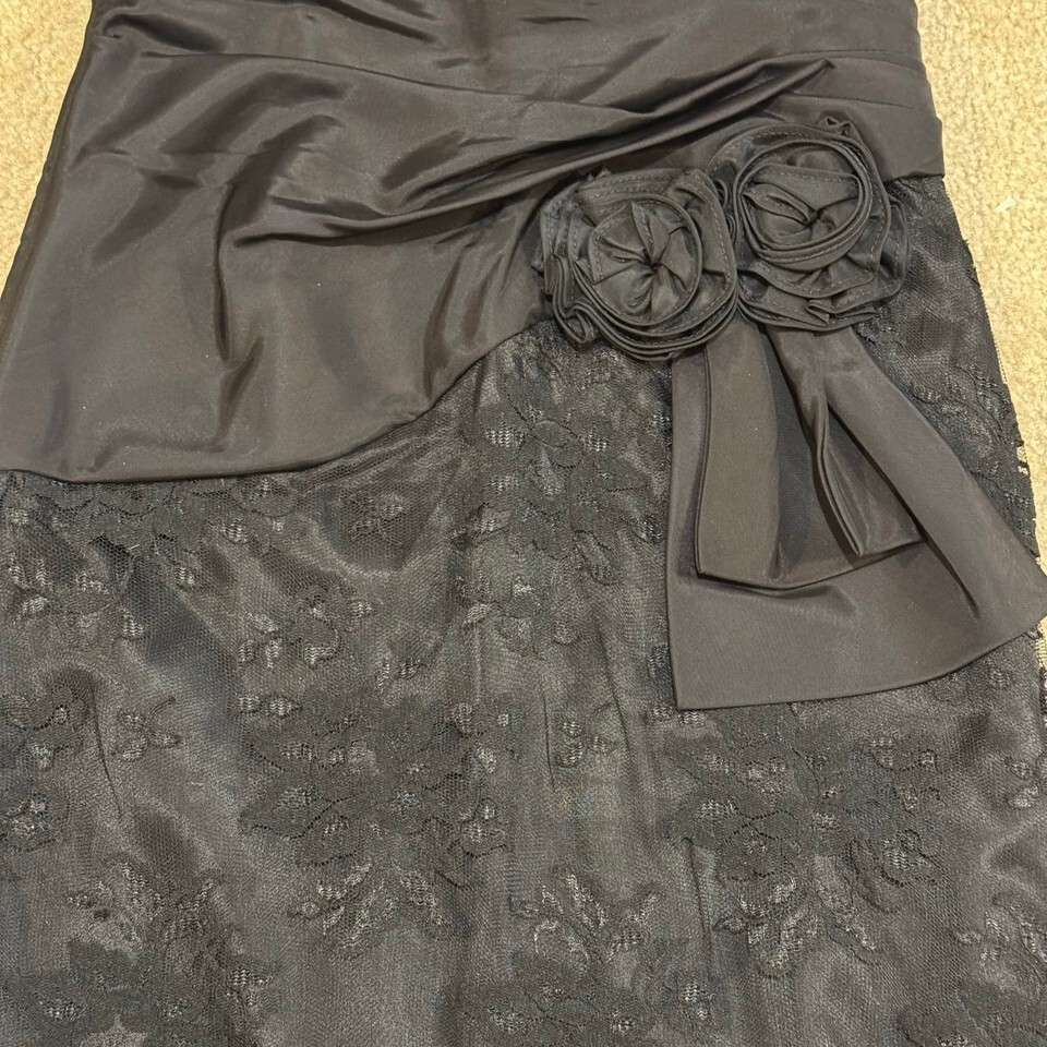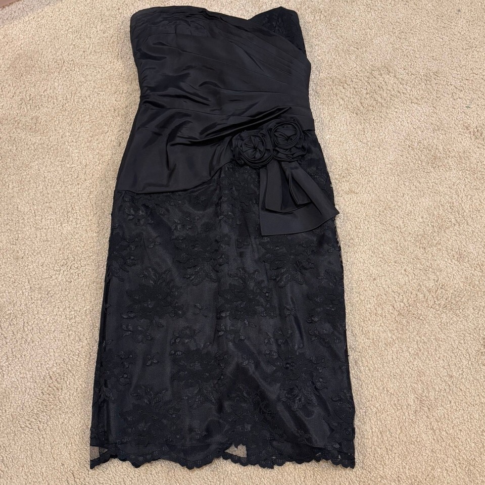 Vintage 80s Scott McClintock Strapless Lace Black Cocktail Dress Rosettes Size XS