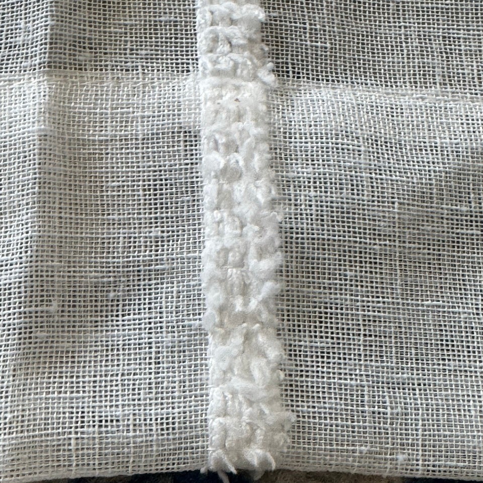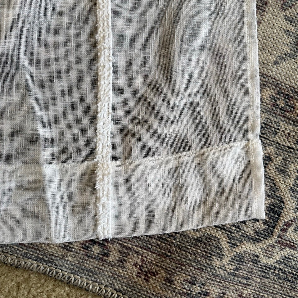 Laura Ashley Single White Sheer Door Curtain Panel Chenille Stripes Nubby Texture