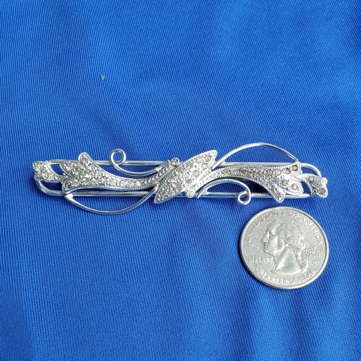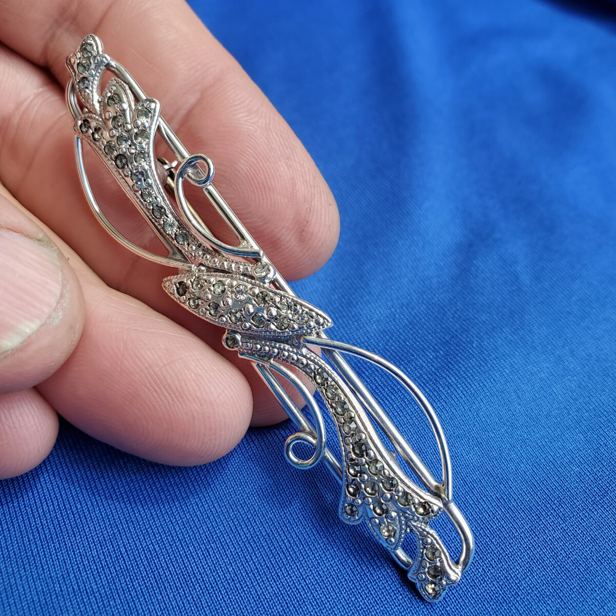 Vintage Art Deco Sterling Silver 925 Diamond Paste Large 3" Inch Pin Brooch