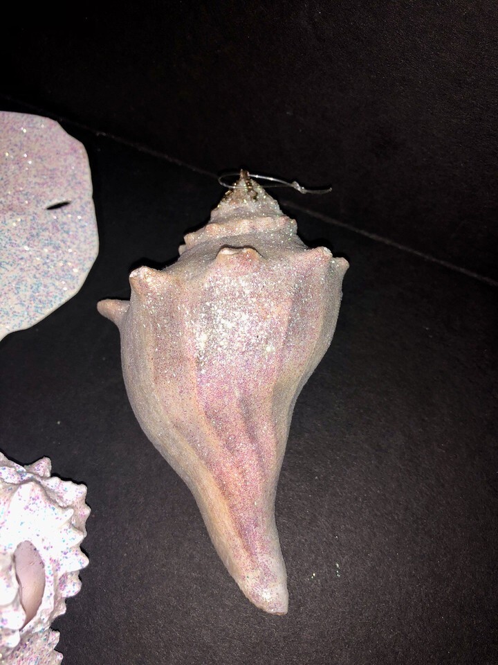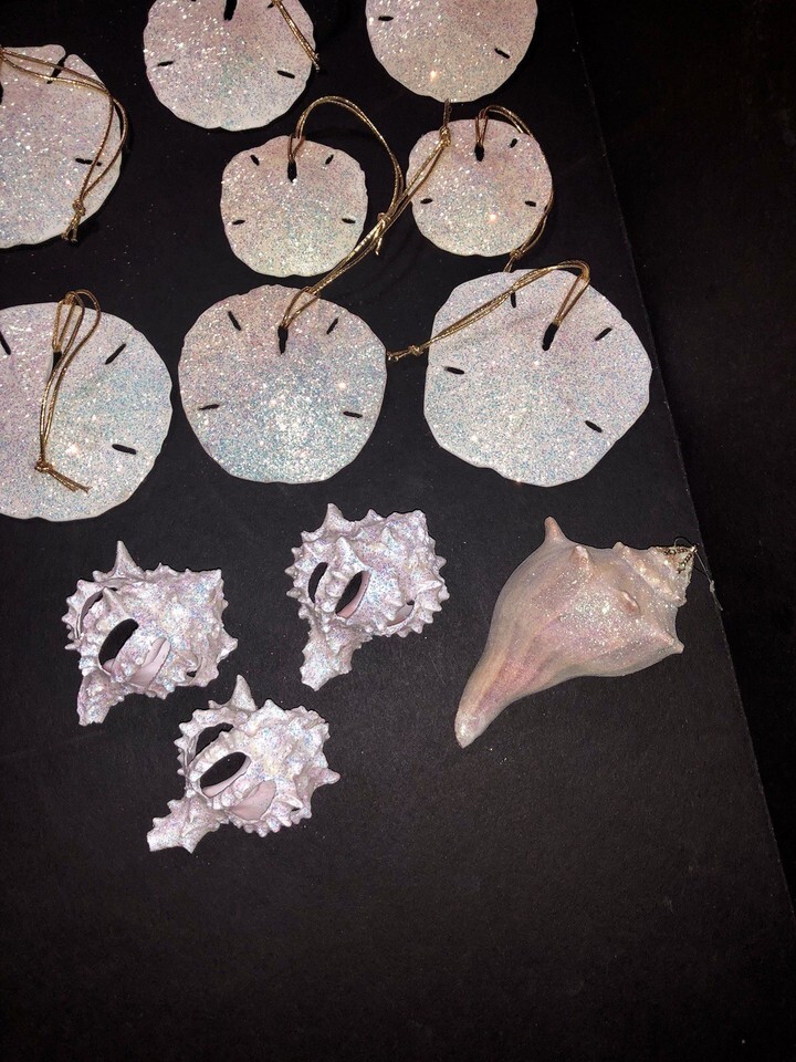 Vintage Natural Sea Shells W/ Glitter 21 Christmas Ornaments Sand Dollars Conch