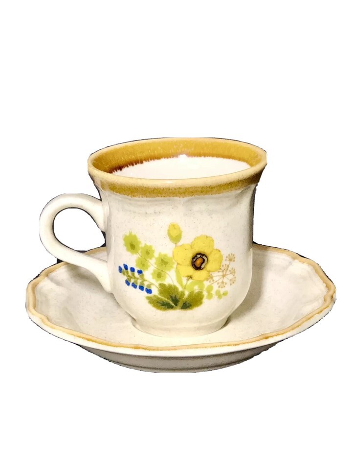 MIKASA Garden Club FRESH FLORAL WHEAT Set of 4 Coffee Tea Cups Saucers Vintage 70?s Retro.