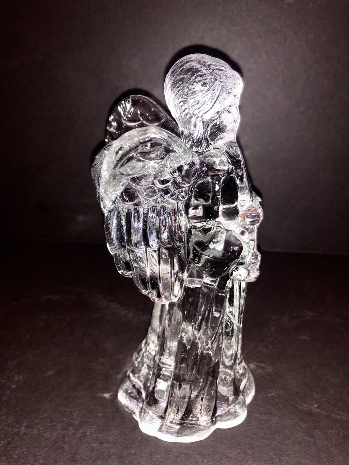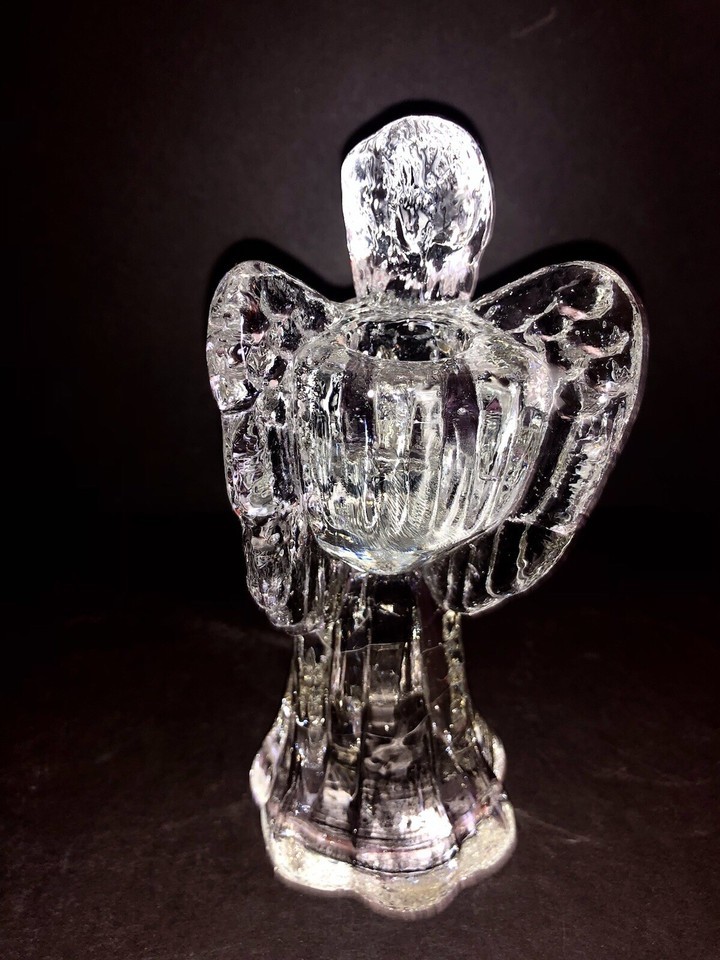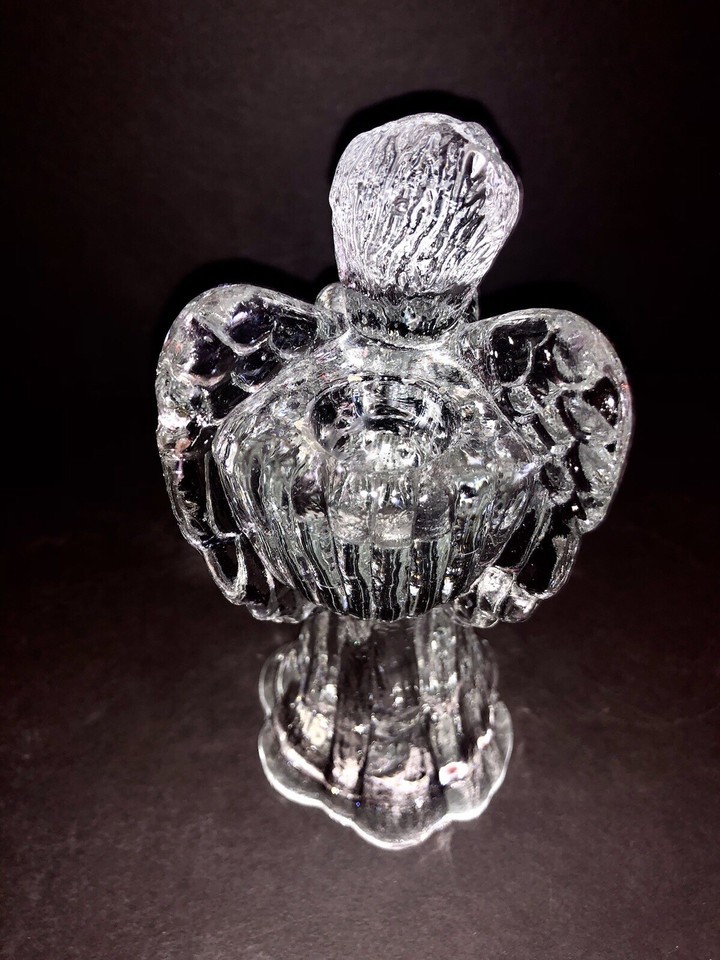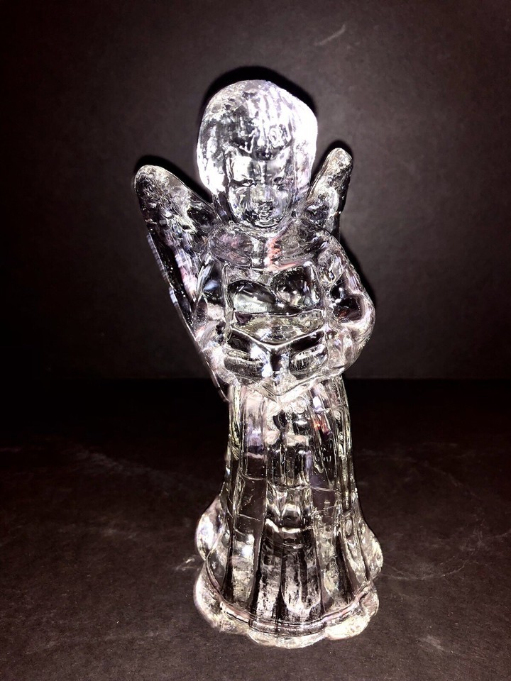 Add a touch of elegance to any room with these two vintage 24% lead crystal glass angels taper candle holders. One is holding a book as if caroling and the other is playing an instrument. Standing at 6.5 inches tall, they are perfect for any setting and suitable for all occasions. The angels are unboxed. They have a 3D effect, making them suitable for any room.