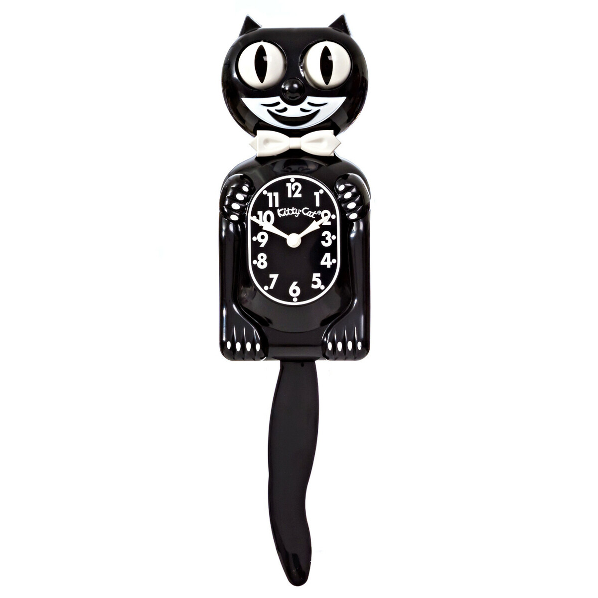 BLACK KITTY CAT CLOCK (3/4 Size) 12.75" Free Battery MADE IN USA Kit-Cat Klock