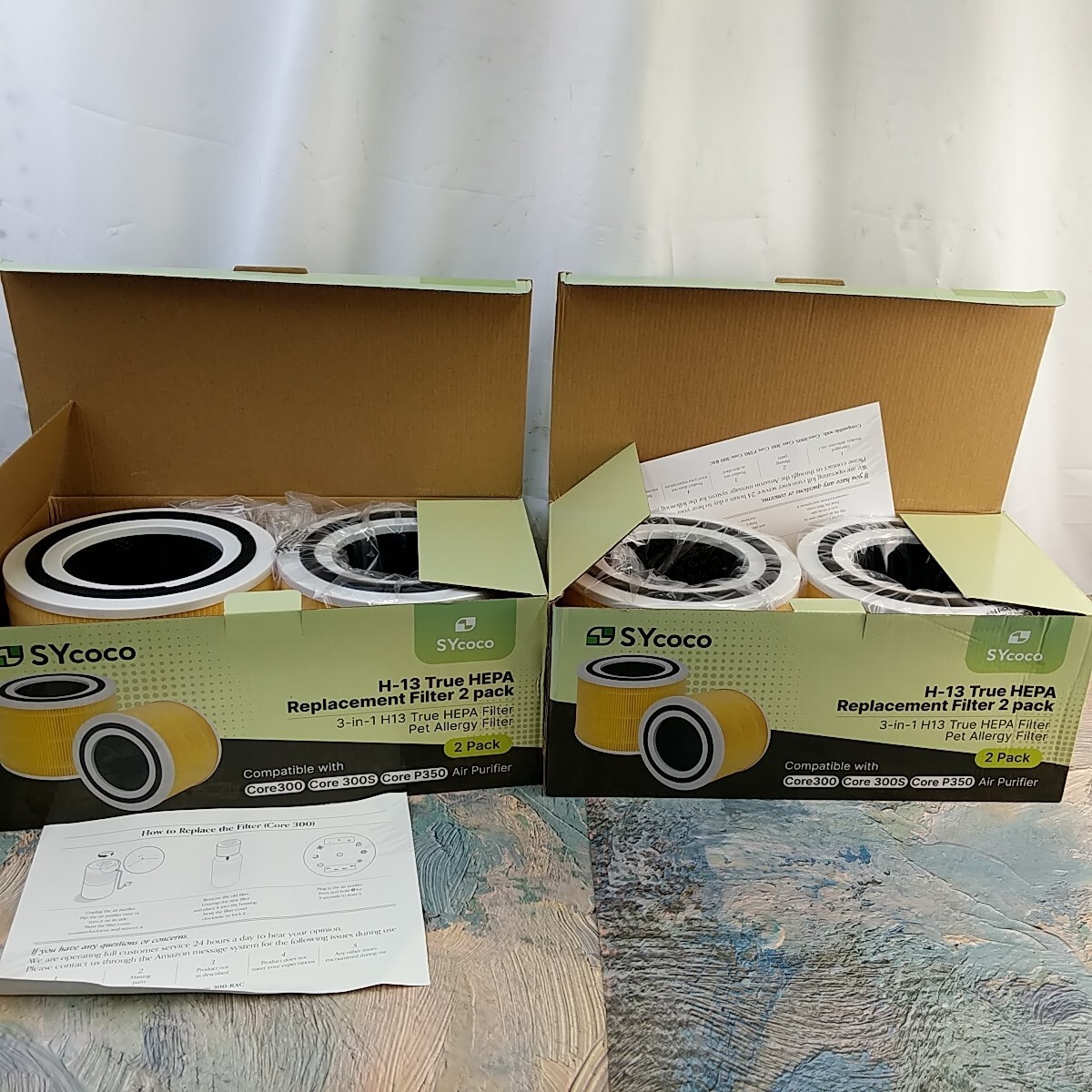 Ensure the air in your living space is clean and fresh with this pack of 4 Sycoco replacement filters, compatible with the Levoit Core300, Core300S, and CoreP350 air purifiers. Each filter is designed with a premium True HEPA filtration system, boasting a high-efficiency carbon fiber filter media that captures particles as small as 0.3 microns, including pollen, dust, and smoke.