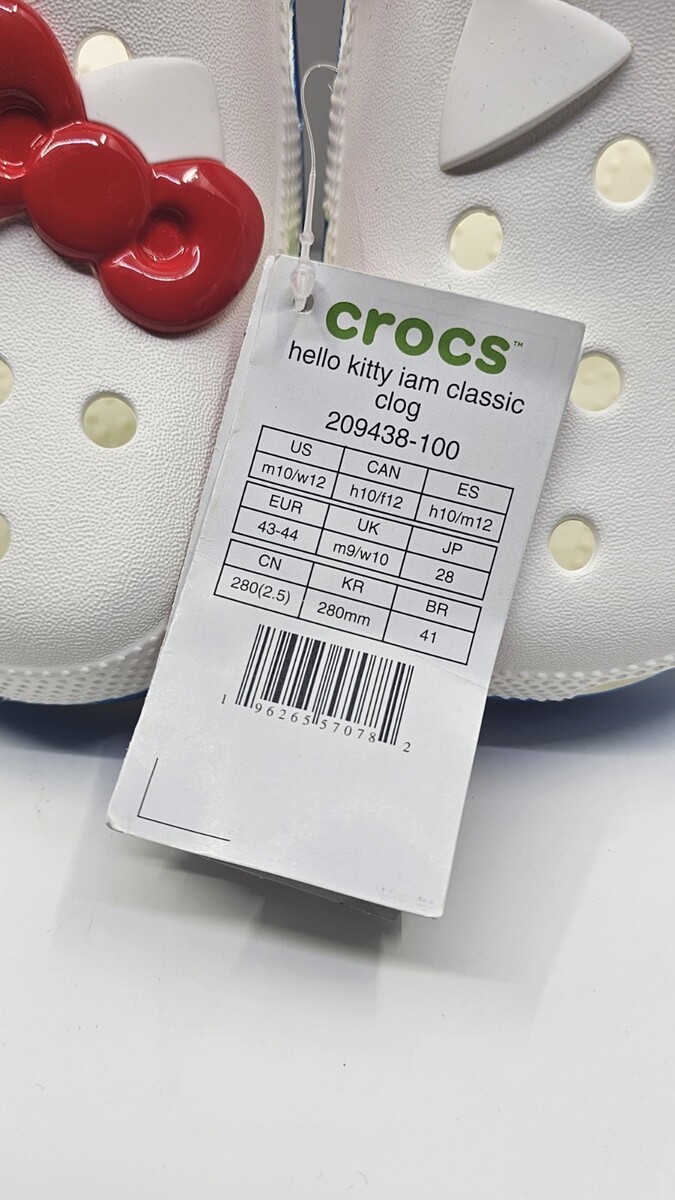 Crocs Hello Kitty Classic Clog White Blue Mens Size 10 Womens Size 12 Sanrio New