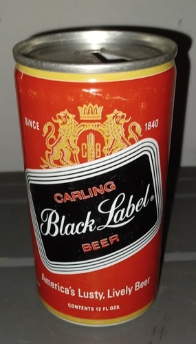 Vintage Empty Pull Tab Beer Can Carling Black Label Beer Red 12 Oz.