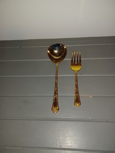 WM Rogers & Son Enchanted Rose Gold Plate Silverware 2 serving pcs Fork & Spoon