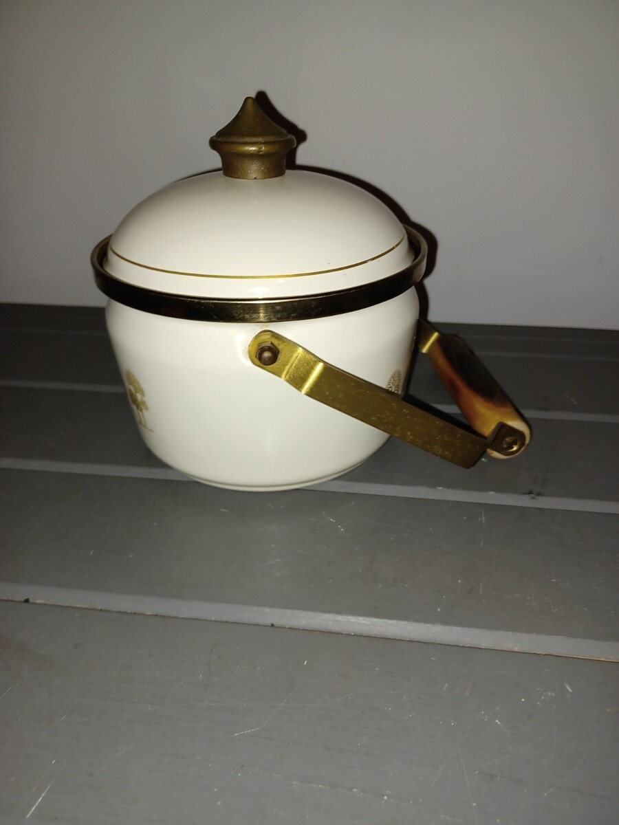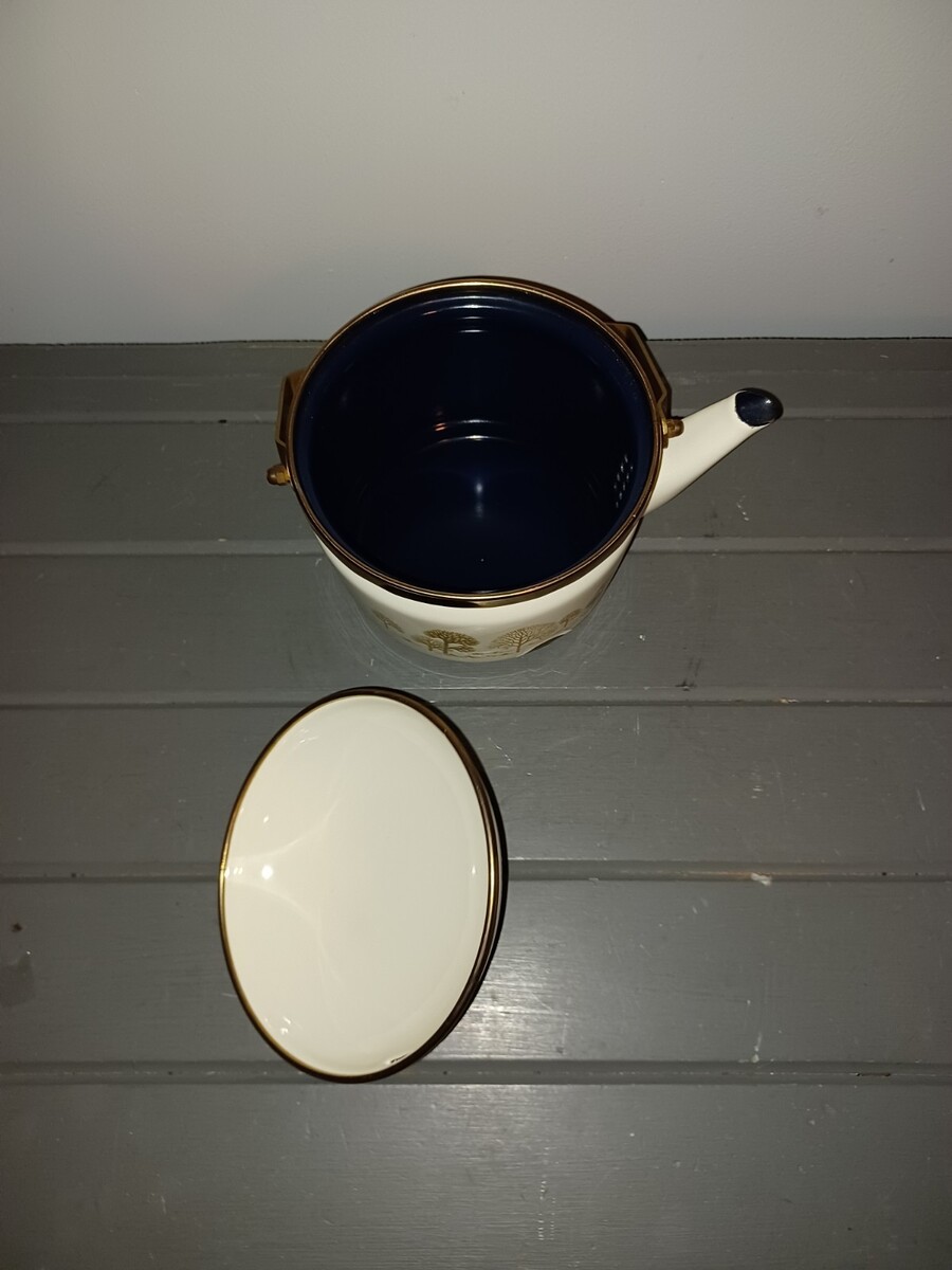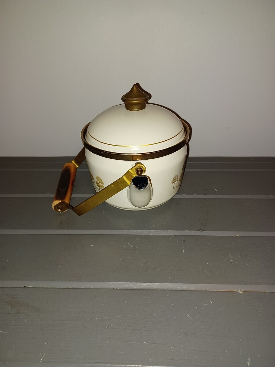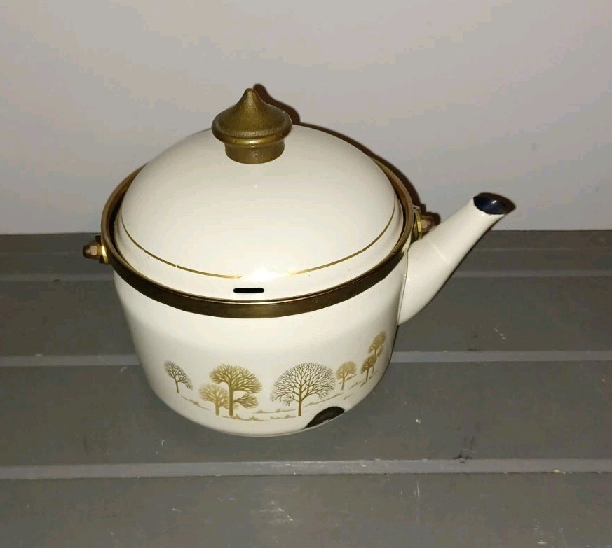 Vintage Asta Tea Kettle Pot mcm WEST German Enamel Ware trees Pattern