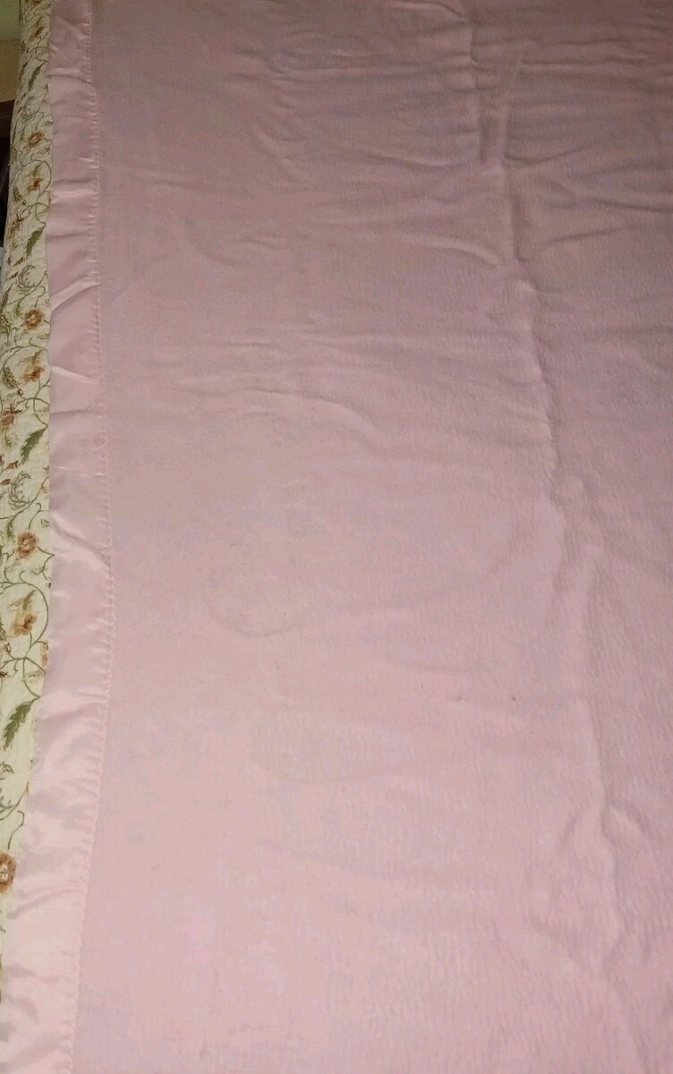 Pink Vintage Blanket With Satin Edges 80" x 72"