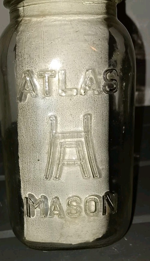Vintage Atlas H Over A Mason Jar Square Body Quart Size