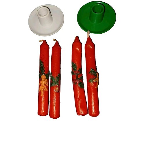 Vintage Hallmark Melamine Candlestick Holders White and Green 1" x 2"