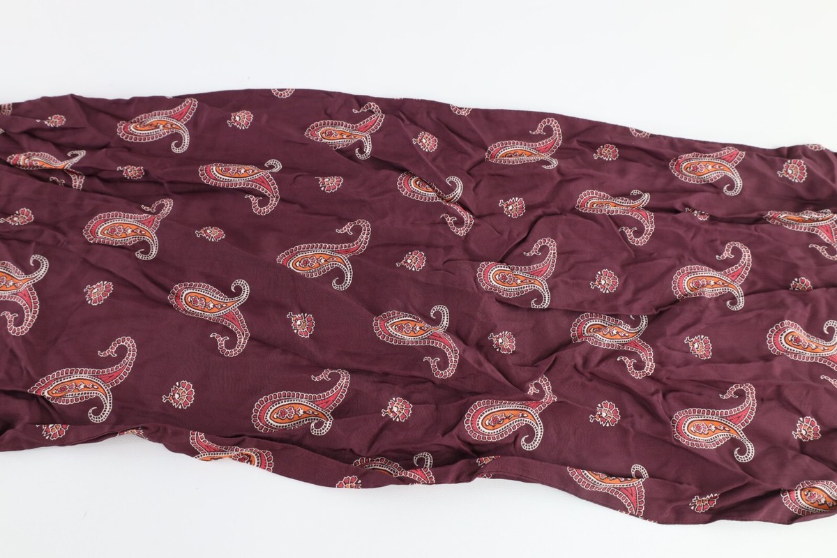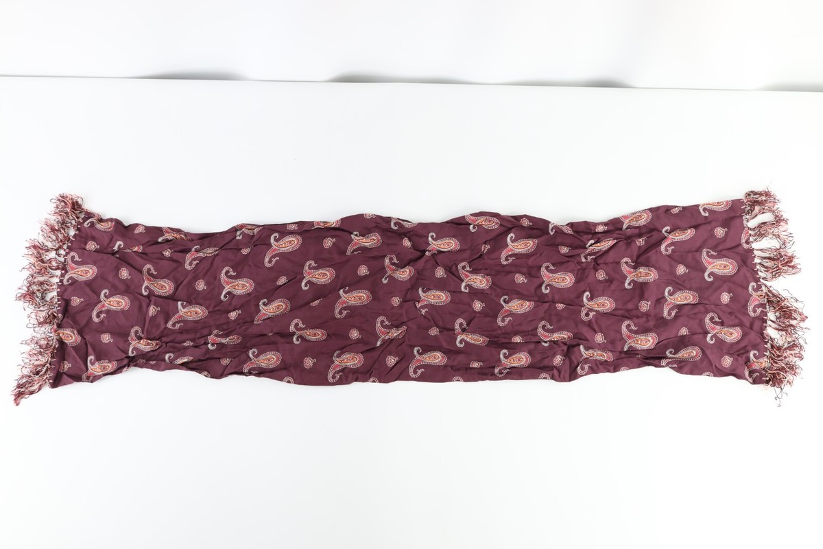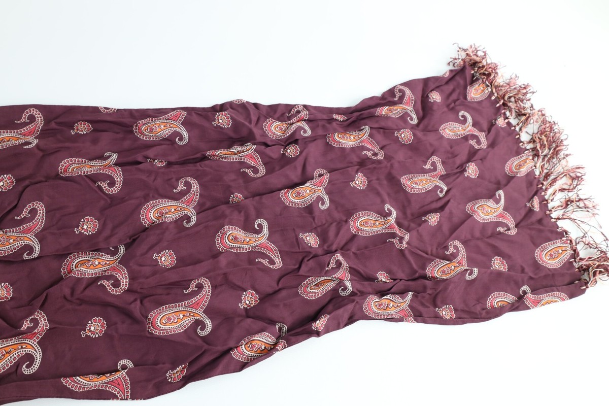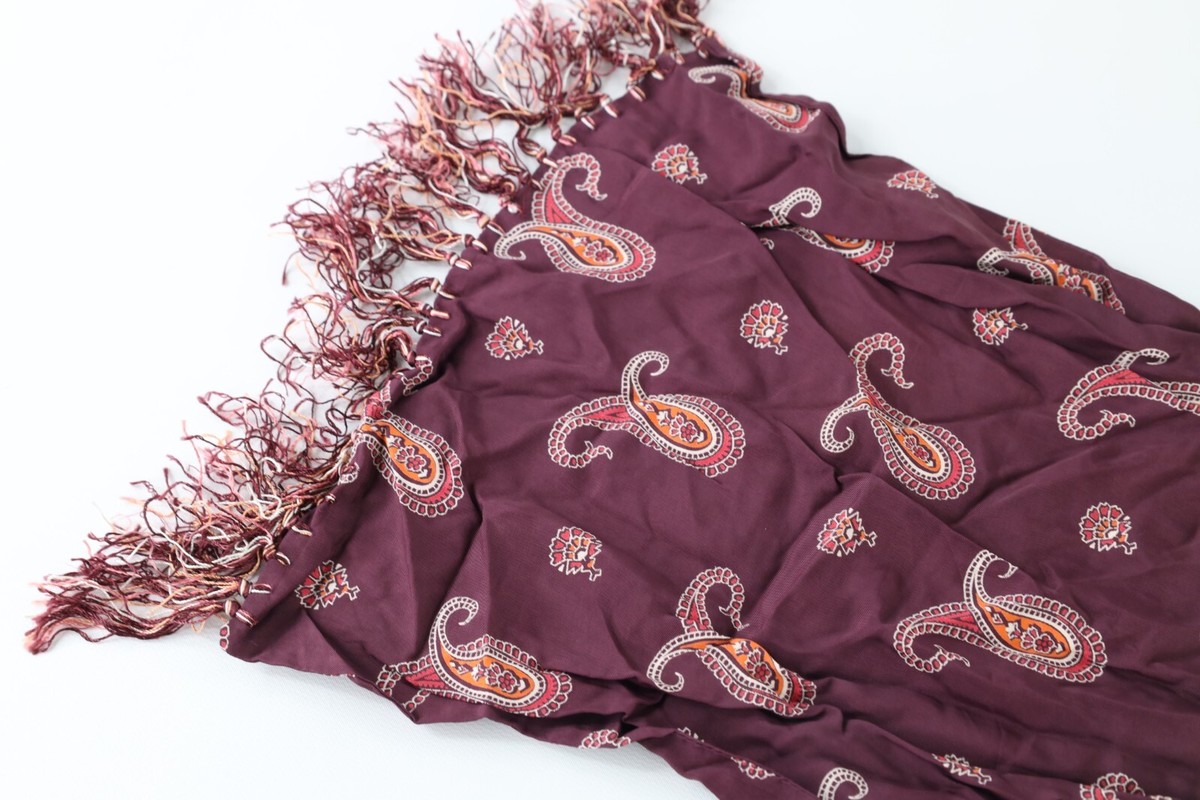 Vintage 40s 50s Rockabilly Paisley Silk Fringed Tassel Scarf Wrap Maroon USA