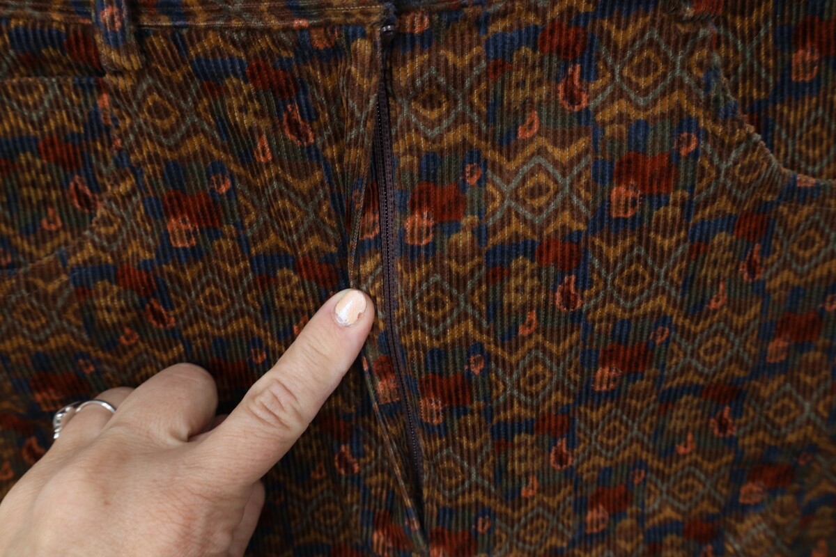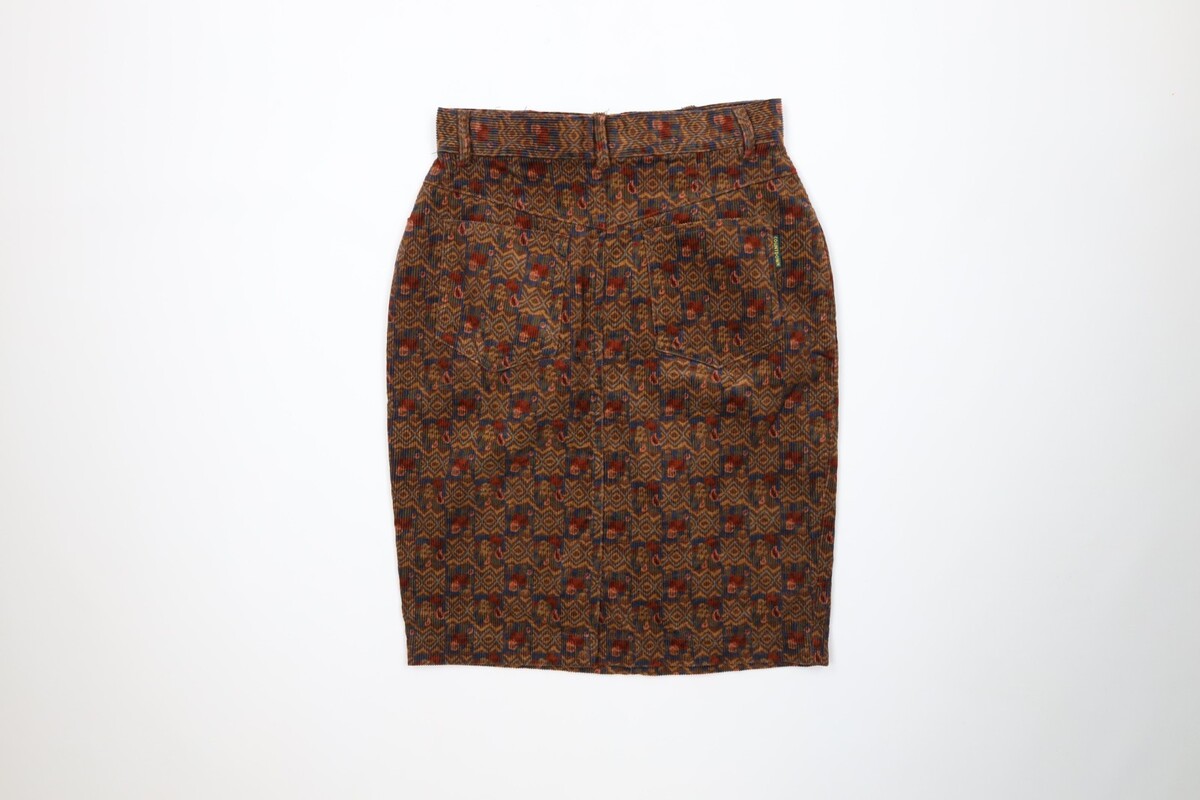Vintage 90s Streetwear Womens Size 26 Rainbow Geometric Paisley Corduroy Skirt