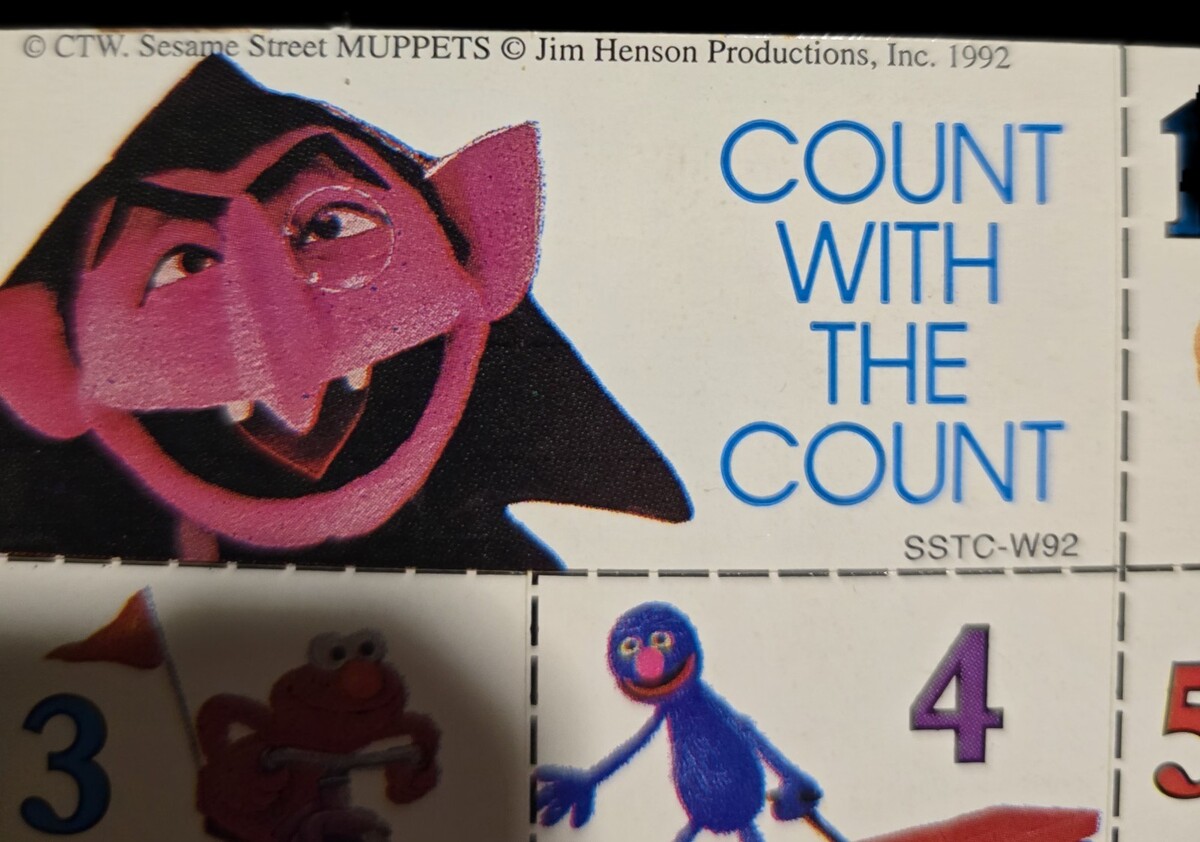 VTG Sesame Street Muppets Count With The Count Sticker Sheet 1992 6”x4”