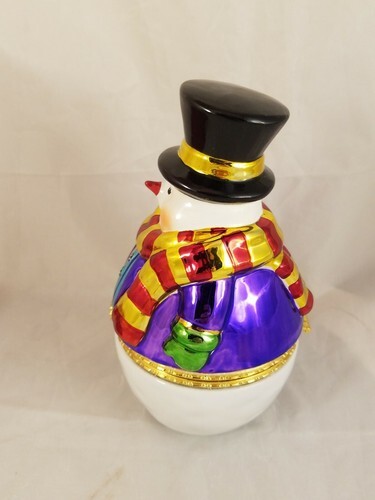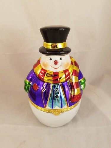 In vendita c'e un bellissimo pupazzo di neve della Christopher Radko Gallerie del 2004 in perfette condizioni. Il pupazzo di neve e alto 6,5" e incernierato in vita.