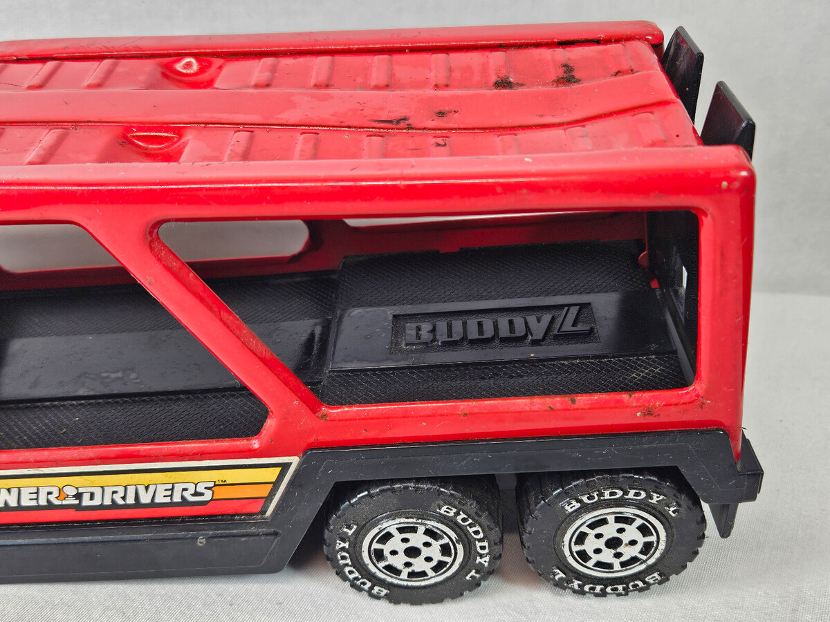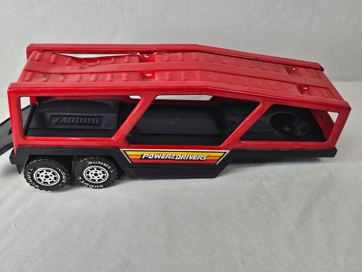 Vintage Buddy L Power Drivers Red Vehicle Car Hauler Trailer 1981 SOME WEAR