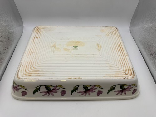 This lasagna dish measures 12 1/4" x 9 3/4" and is 1 7/8" in height. It is in very good condition with no chips or cracks. It has some staining on the bottom.