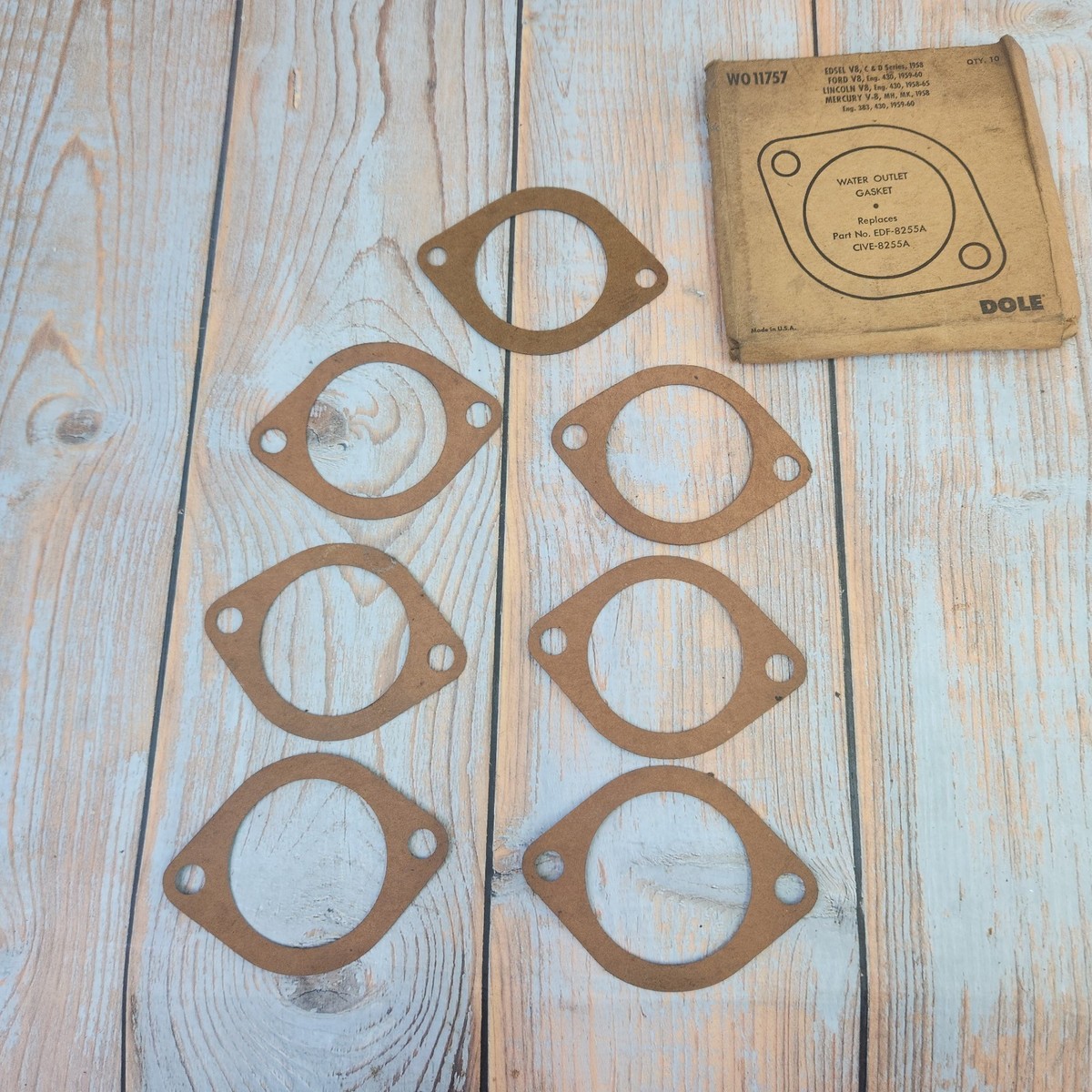 7pc Dole WO11757 Fits Ford Edsel Water Outlet Gaskets For EDF8255A CIVE8255A NOS