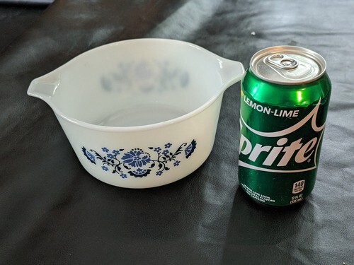 Cette cocotte couverte en Pyrex vintage au motif floral d'oignon bleu est un bel ajout a n'importe quelle cuisine. Avec un diametre de 6 1/2 pouces et une hauteur de 3 1/8 pouces, ce plat a la taille parfaite pour cuisiner et servir vos plats preferes. Fabrique en verre blanc brillant et bleu, ce plat est a la fois durable et elegant. C'est un plat d'un litre parfait pour les petits et moyens repas. Cet article est en tres bon etat et est parfait pour les collectionneurs de pieces vintage en Pyrex.