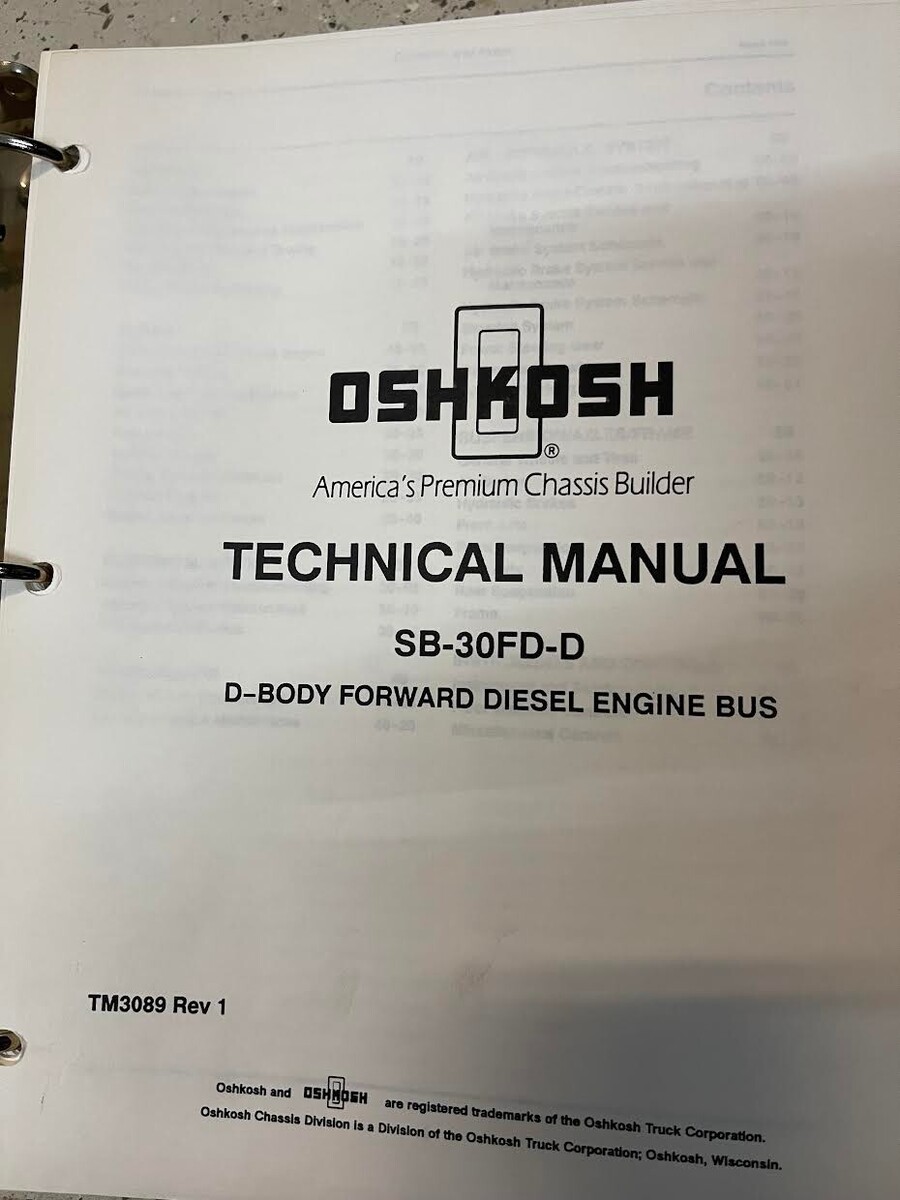 Manual Técnico OSHKOSH SB-30FD-D Cuerpo D Motor Diesel Del Autobús TM3089 REV1