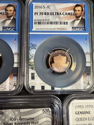 The product is a lot of 8 graded, slabbed coins that mix different denominations and dates from the the US and Britain . The coins are certified by PCGS, NGC, and ICG. In addition to US coins, the lot also includes British coins. This diverse collection is perfect for collectors looking to expand their portfolio with a mix of denominations and countries.