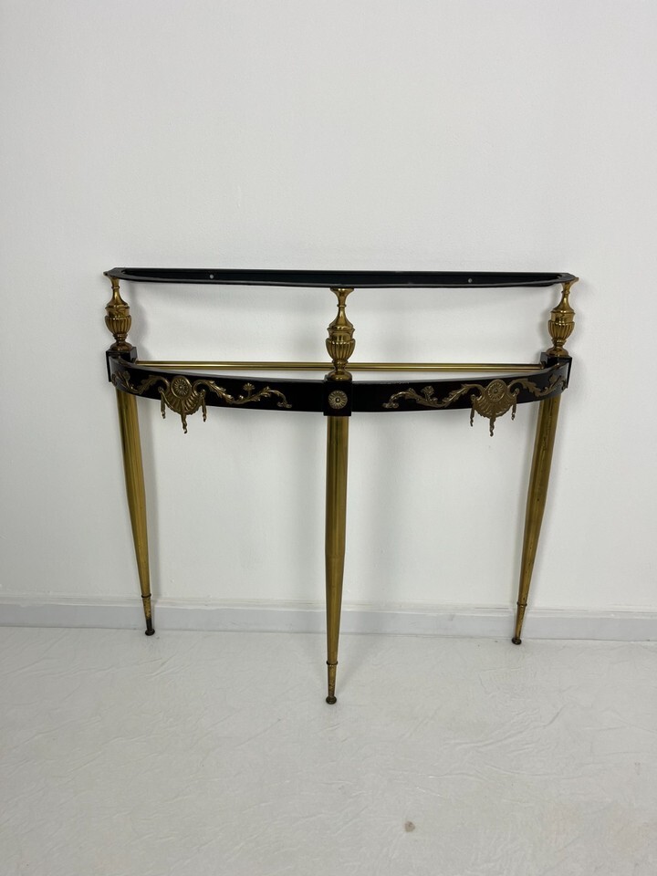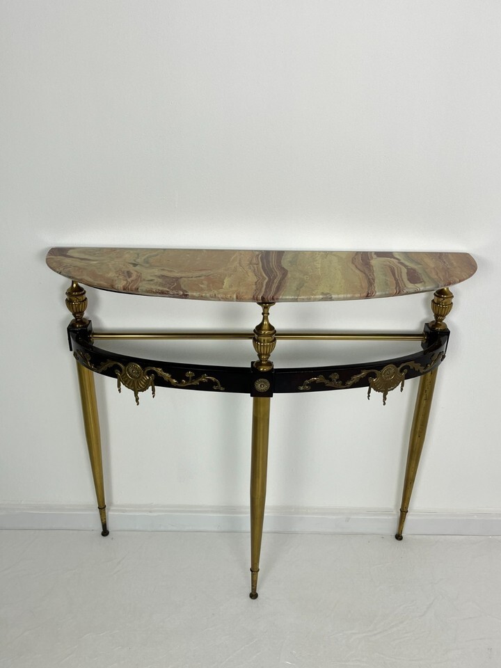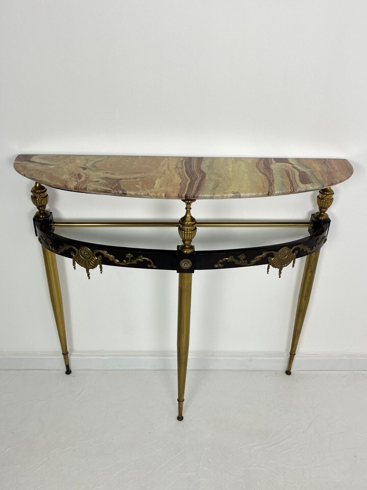 Consolle Mid-Century in ottone, faggio laccato e marmo anni '50.