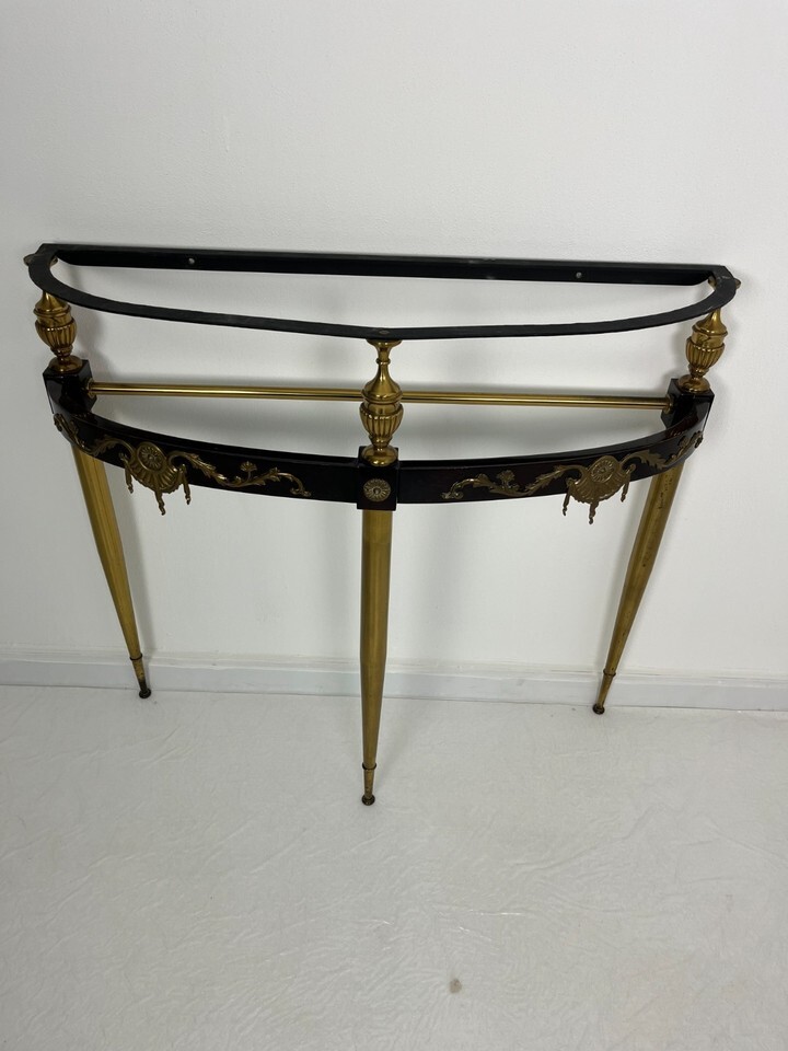 Mid-Century Brass, Lacquered Beech and Marble Console Table 1950s- show origi...