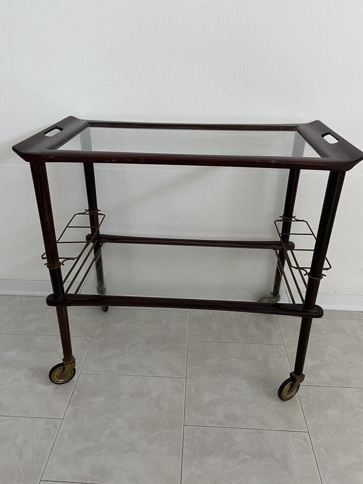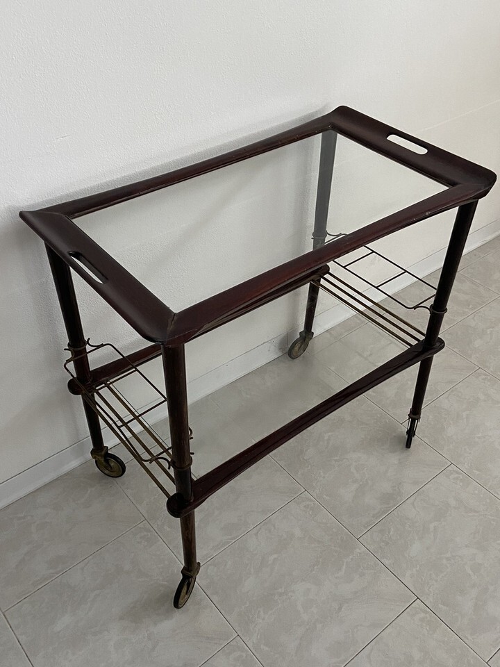 Carrello servizio legno,vetro ed ottone,anni ?50.