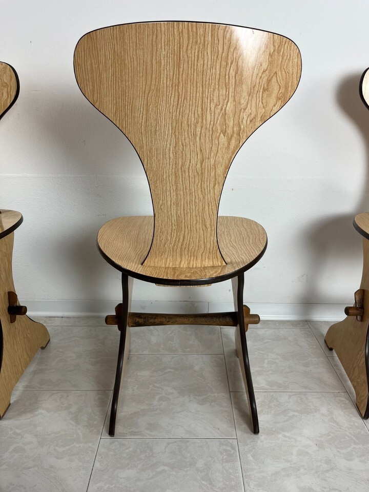 Set di 6 sedie Pedini Fano Mid-Century, design italiano anni '60Multistrato di faggio curvato e sagomato, laminato chiaro, integre ed in buone condizioni, piccoli segni del tempo