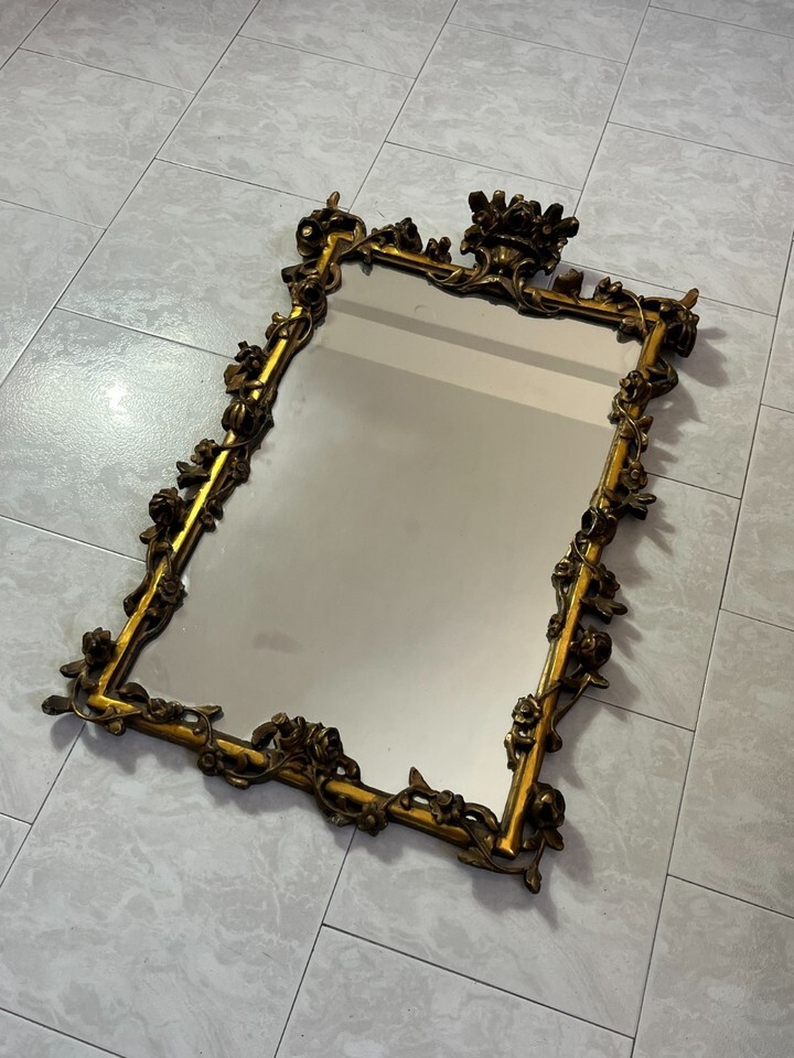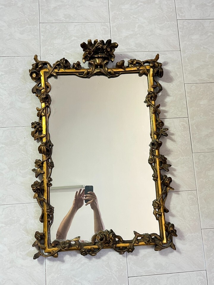 French Carved Wood Gold Finish Wall Mirror, 1930s- show original title Origi...