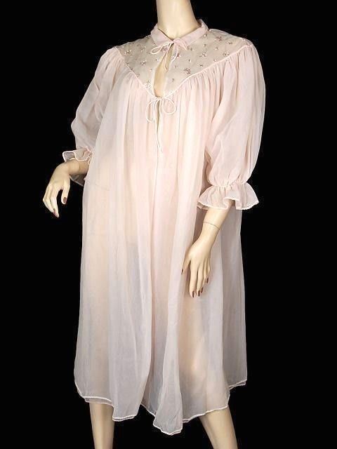 VTG Sheer Pink Nylon Embroidered Housecoat and similar items