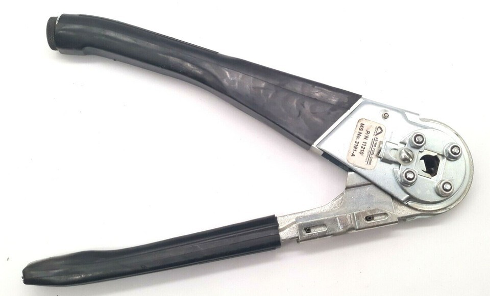 The 11210, mil spec MS3191-A, is a controlled cycle ratchet crimp tool frame. No dial adjustments as the positioner determines crimp depth, crimp location and point of ratchet release. Frame only ? no positioners included.