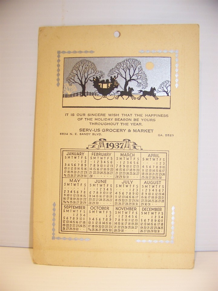 1937 SERV-US GROCERY & MARKET CALENDAR SANDY BLVD PORTLAND, OR